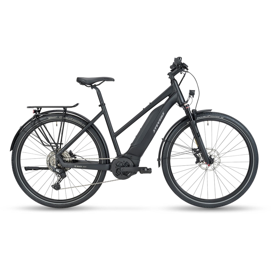 Entdecke das neue Stevens E-6X Tour Lady – dein perfekter Begleiter fuer die Stadt! Mit seinem stylischen schwarzen Trapezrahmen und den robusten 29 Zoll Raedern bist du nicht nur flott unterwegs, sondern auch super bequem. Der leistungsstarke Bosch-Motor und die 545 Wh Batterie sorgen dafuer, dass du jede Strecke mit Leichtigkeit meisterst. Und mit den hydraulischen Scheibenbremsen hast du immer die Kontrolle. Lass dich von diesem E-Bike begeistern und erlebe Fahrspass pur!