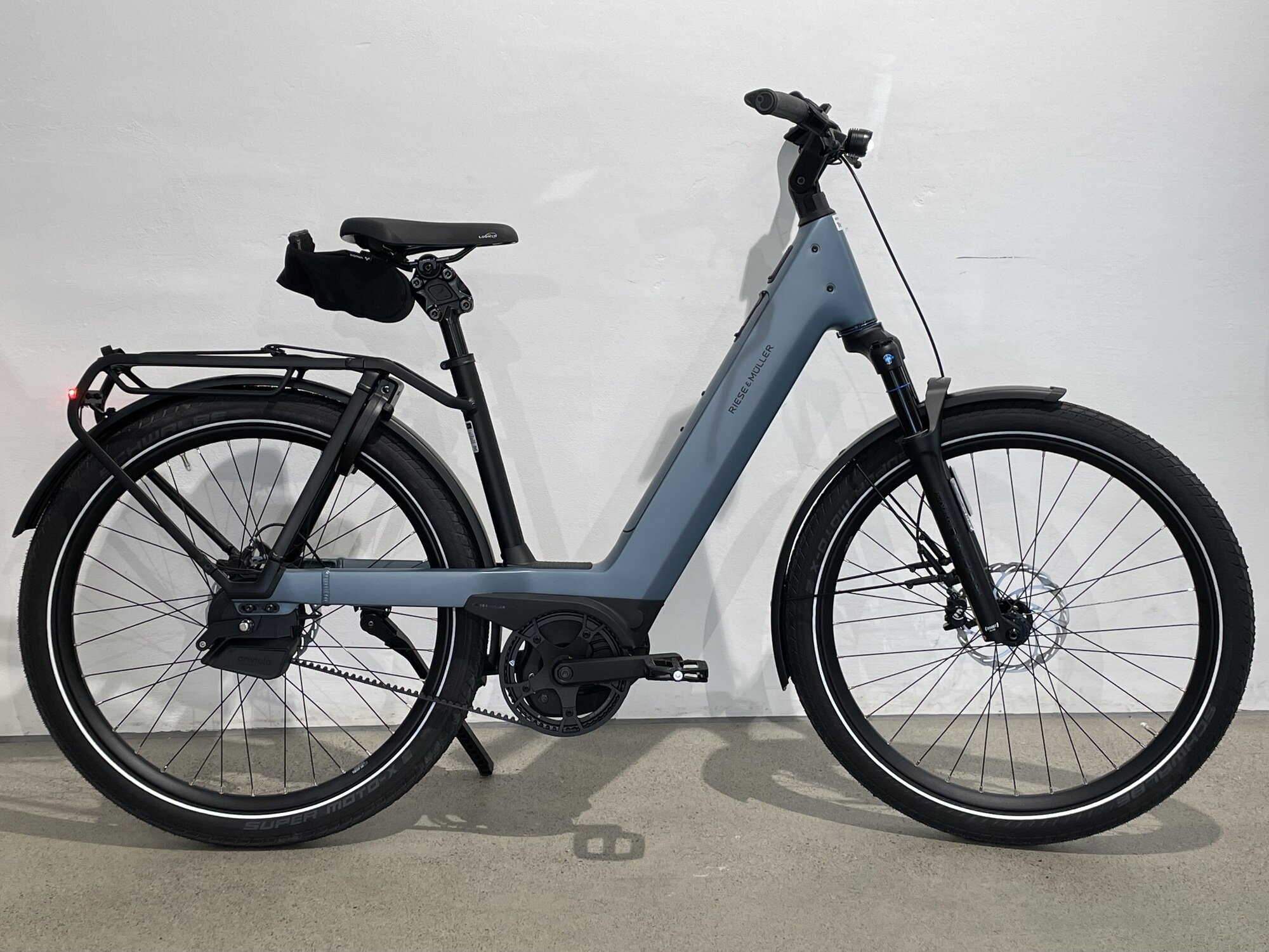 Entdecke das brandneue Riese & Mueller Nevo E-Bike! Mit seinem stylishen blauen Aluminiumrahmen und den robusten 27.5 Zoll Raedern ist es perfekt fuer deine naechsten Abenteuer. Egal ob auf dem Weg zur Arbeit oder beim gemuetlichen Ausflug ins Gruene – die Enviolo-Gaenge und der kraftvolle Bosch-Motor sorgen fuer ein unvergleichliches Fahrgefuehl. Lass dich von der Leichtigkeit des Fahrens begeistern und erlebe Freiheit auf zwei Raedern! Mach dich bereit fuer unvergessliche Touren!