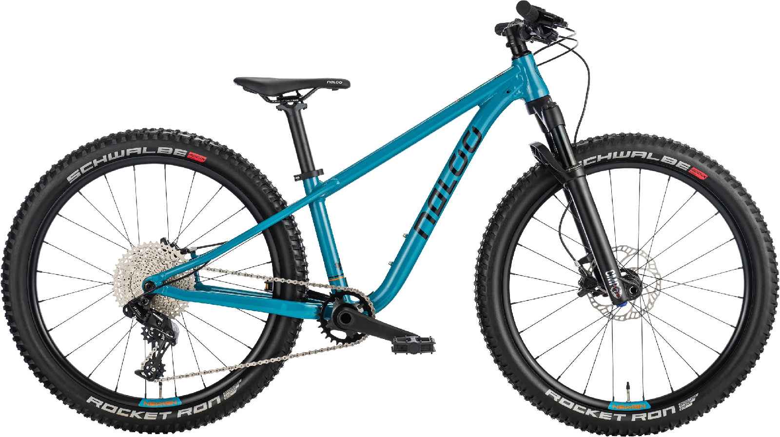 -24“ Kinder MTB -Sehr leichter Alurahmen -UDH Schaltauge -12mm Steckachse hinten -Gewicht nur 9.9 kg (ohne Pedalen) -Durchdachte Geometrie -Tiefes Tretlager -Tief gezogene Kettenstrebe für weniger Kettenschlag auf der Strebe -Q-Faktor nur 149mm -Lenker mit ergonomischen 12° Backsweep -Lock-On Griffe mit extra kleinem Durchmesser von 28mm -Manitou Junit 24 Air, 80mm, Kids Tune -11-fach Sram NX Schalthebel -11-fach Sram NX Wechsler -Kassette Sunrace 11-42T -Kette KMC X12 -Kurbel mit Hohlachse, 140mm, 28T Direct Mount Kettenblatt -Magura MT-Thirty Bremsen (vorne 160mm/hinten 140mm) -Schwalbe Rocket Ron 24x2.35, Faltreifen, Addix Evo, Tubeless Ready -NEWMEN X.A.25 Felgen, Tubeless Ready -Vorbau 40mm -Kindergerechter Sattel mit CrMo-Gestell -Alu Sattelstütze 31.6mm -VP-225 Pedale
