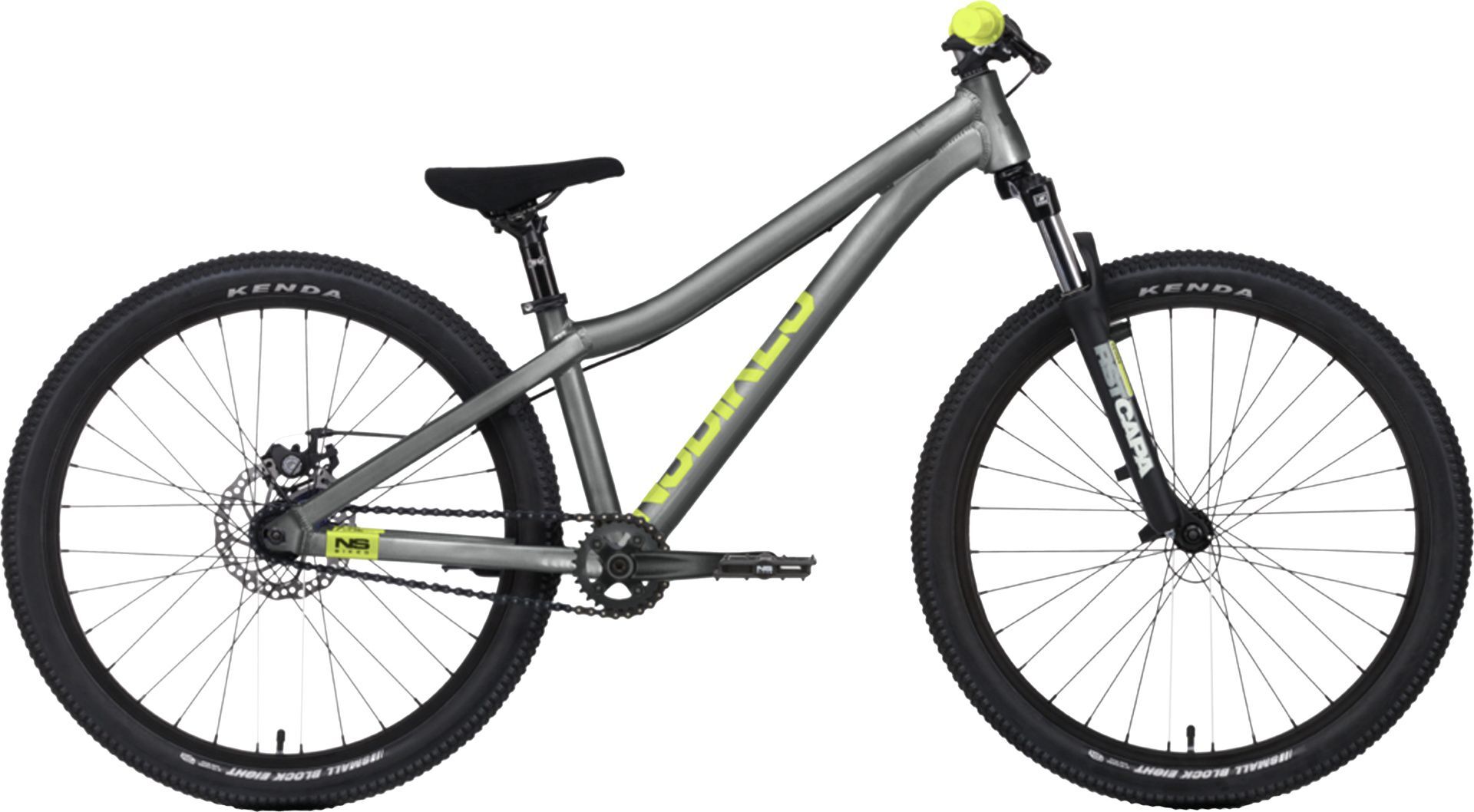 Bist du bereit fuer dein naechstes Abenteuer auf zwei Raedern? Das NS Bikes Zircus 2023 ist das perfekte Dirtbike fuer alle, die Action und Spass suchen! Mit seinem leichten Aluminiumrahmen und den coolen 24 Zoll Raedern bist du bereit, die Trails zu erobern. In stylischem Grau und mit zuverlaessigen V-Brakes ausgestattet, bist du immer sicher unterwegs. Schnapp dir dein Velo und lass die Dirtpark-Action beginnen!
