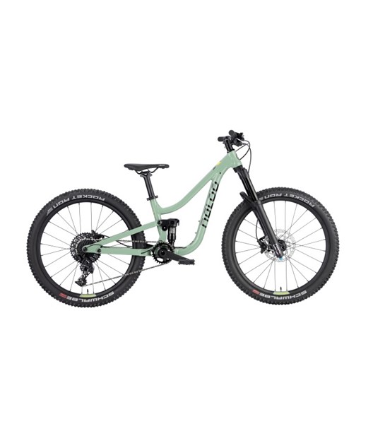 -24“ Kinder Fully -Rahmen: Viergelenker mit HorstLink, optimierte Kinematik für Kinder -120mm Federweg -Custom Butted 6061-T6 Aluminium -Dämpfer: RockShox Trunnion Deluxe Select+ RT (Rebound einstellbar, Compression open/firm), „Kids Tune“ für optimales Ansprechen bei leichtem Körpergewicht -Gabel: Manitou Junit Air 120mm (Rebound und Compression einstellbar). 15x110mm Hexlock SL Axle, „Kids Tune“ für optimales Ansprechen bei leichtem Körpergewicht -12mm Steckachse hinten -Sram UDH Schaltauge -Gewicht nur 11.9 kg (ohne Pedalen) -Durchdachte Geometrie -Tiefes Tretlager -Q-Faktor nur 149mm -Lenker mit ergonomischen 12° Backsweep -Lock-On Griffe mit extra kleinem Durchmesser von 25mm -11-fach SRAM NX Schalthebel -11-fach SRAM NX Wechsler -Kassette SRAM 11-42T -Kurbel mit Hohlachse, 127mm, 28T Direct Mount Kettenblatt -Shimano MT-410 Bremsen (vorne 180mm/hinten 160mm) -Schwalbe Rocket Ron 24x2.35 Faltreifen, Tubeless Ready -Newmen X.A. 25 Felgen, Tubeless Ready -Vorbau 40mm -Kindergerechter Sattel -Alu Sattelstütze 31.6mm