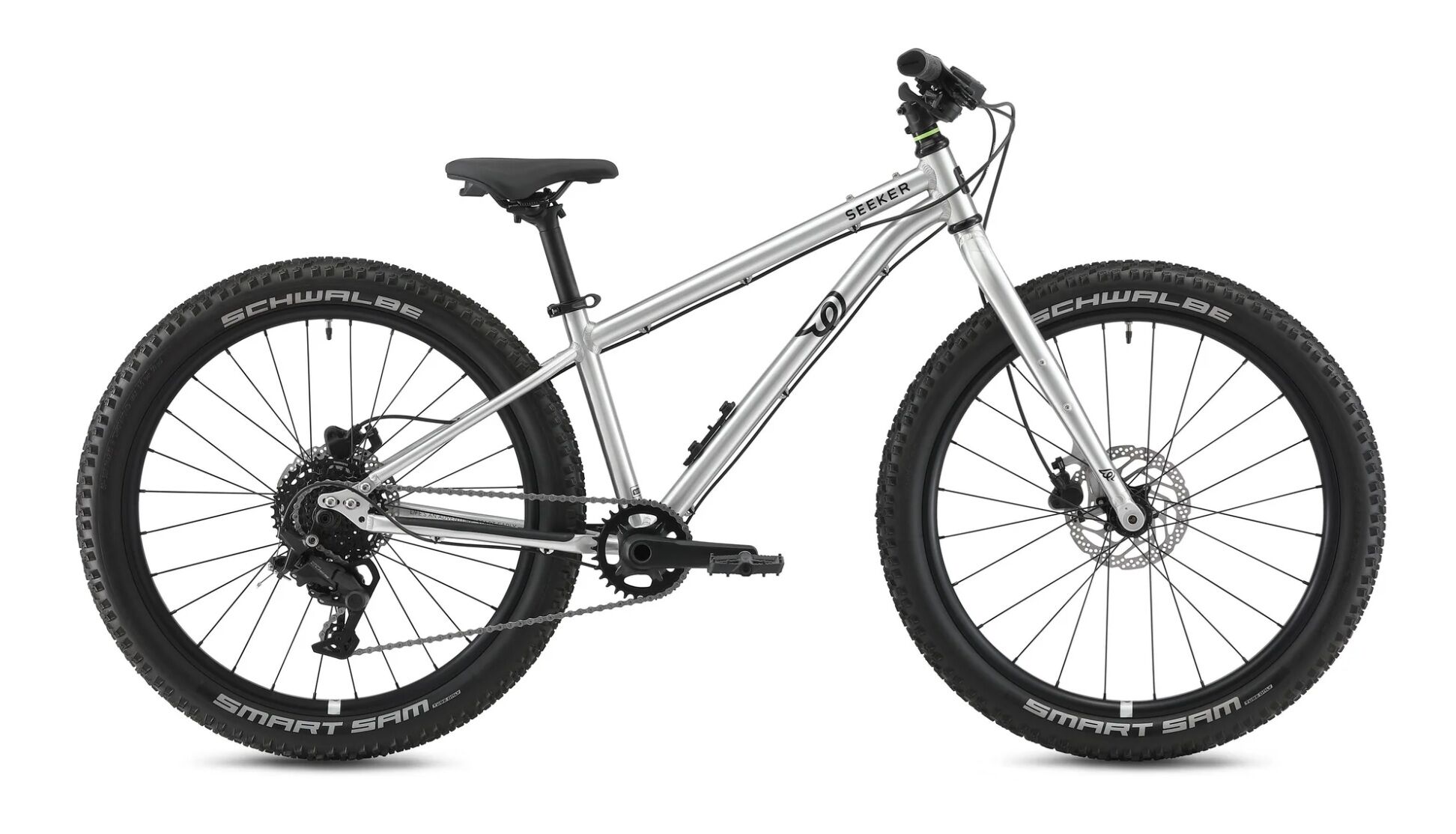 Das Seeker 24 wurde entwickelt, um Offroad-Abenteuer mühelos zu meistern und auf unterschiedlichstem Gelände ein sicheres Fahrgefühl zu bieten. Ausgestattet mit einem Shimano CUES 1x9-Antrieb und einem leichtgängigen Daumenschalthebel sorgt es für sanftes und präzises Schalten, während die 130-mm-Kurbelarme effizientes Pedalieren ermöglichen.