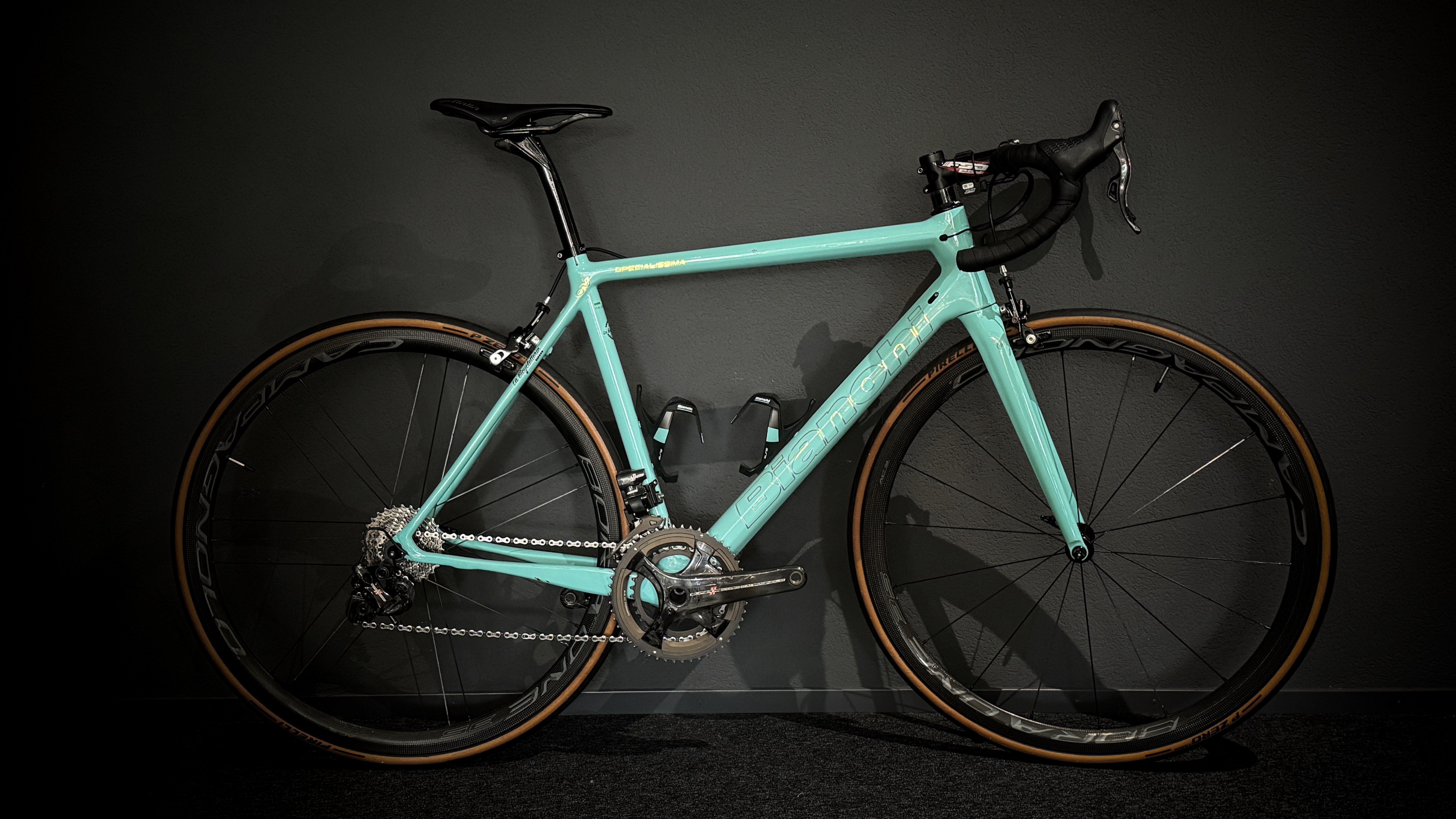 Entdecke die Freiheit auf zwei Raedern mit dem Bianchi Specialissima! Dieses Rennrad in coolem Tuerkis ist nicht nur ein echter Hingucker, sondern auch ein echtes Leichtgewicht dank des Carbonrahmens. Perfekt fuer alle, die Geschwindigkeit und Stil lieben! Mit den praezisen Campagnolo-Gaengen und den zuverlaessigen Felgenbremsen bist du bereit fuer jede Herausforderung. Schnapp dir dieses Occasion-Velo und erlebe unvergessliche Touren!