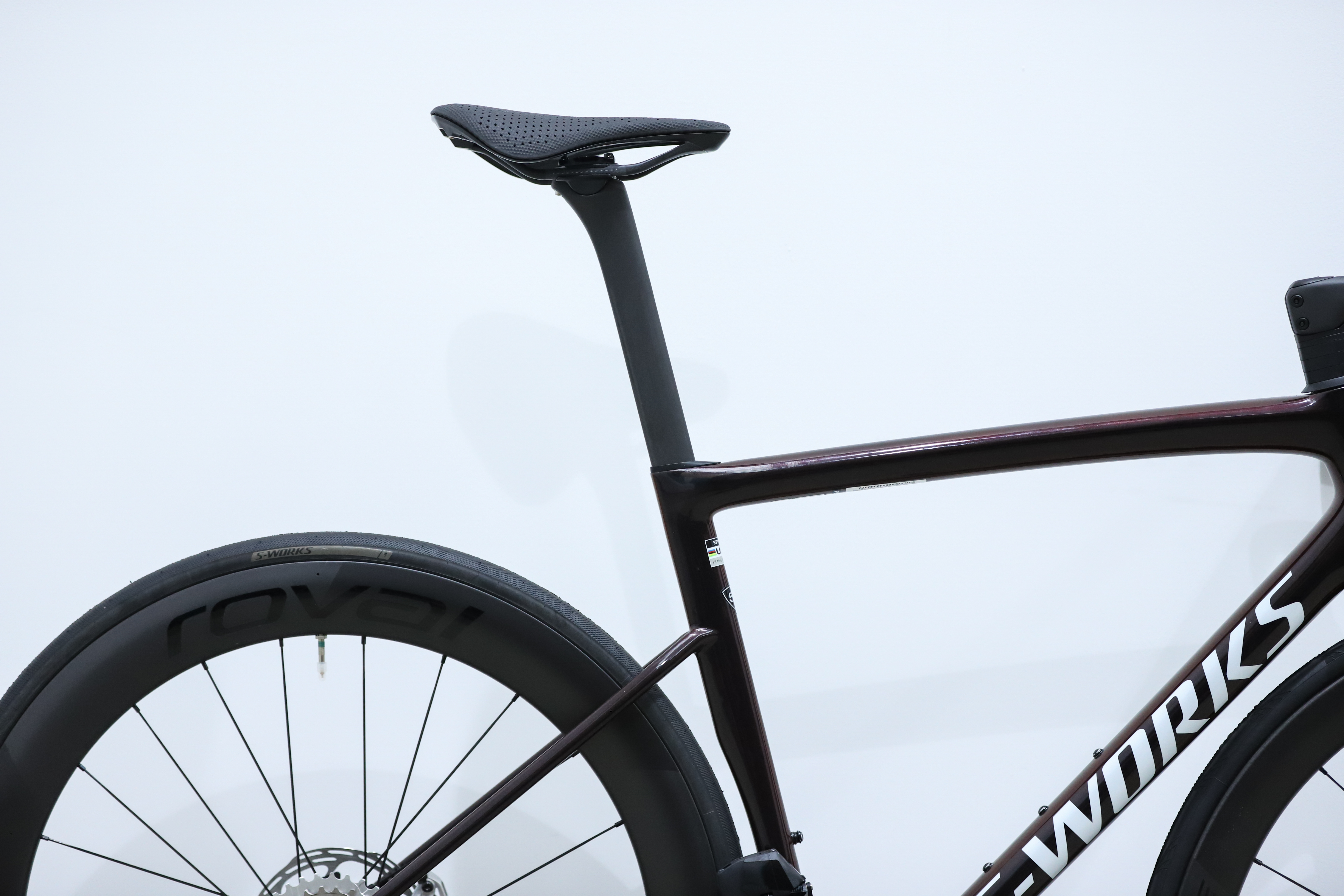 So kam auch der markante, von Specialized selbst so genannte «Speed Sniffer» zustande – die vorgespannte Nase des Steuerrohrs – und das serienmässige Roval-Rapide-Einteilcockpit auf allen S-Works-Modellen.