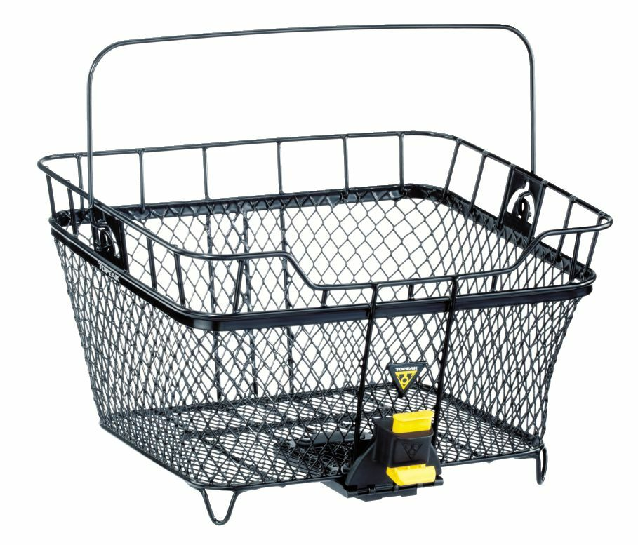 A perfect basket for shopping. Metal wire luggage carrier basket with carrying handle, compatible with the Topeak MTX rail system.