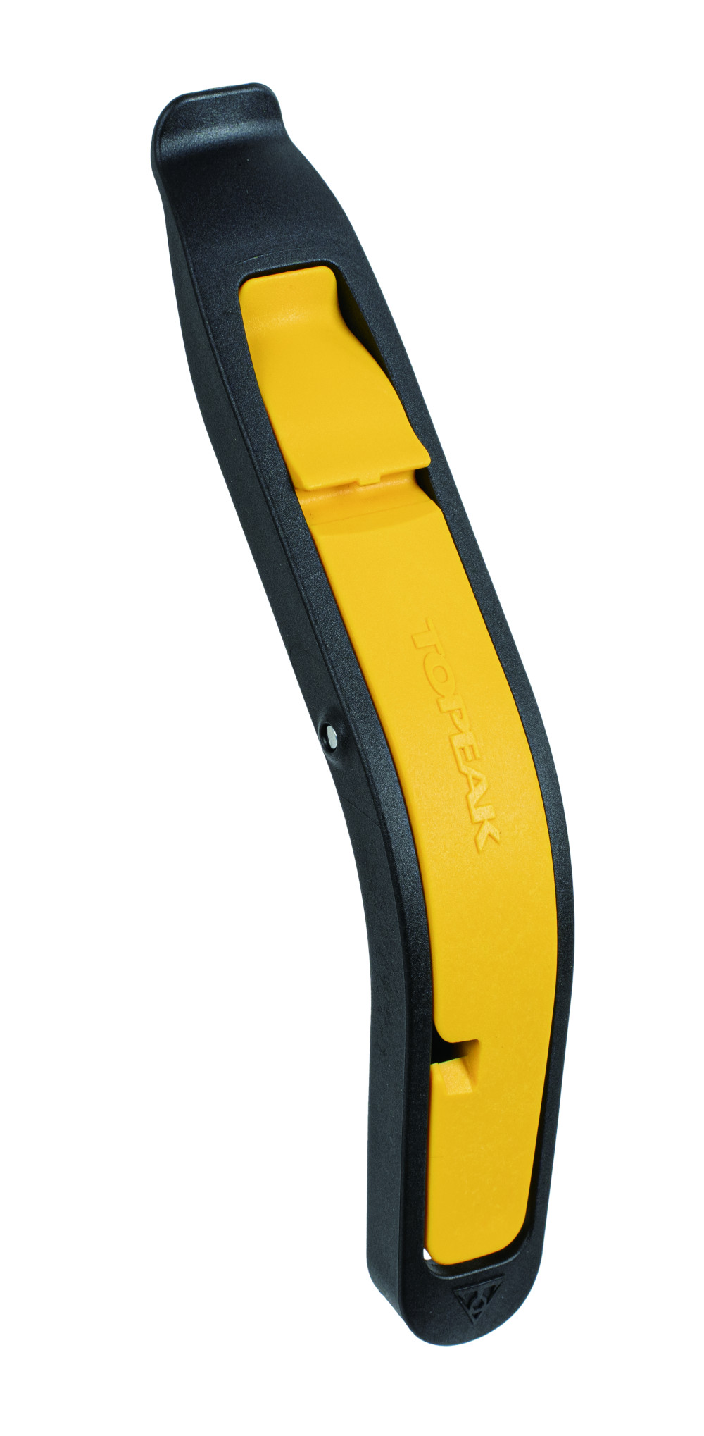 Often, changing a tire is more difficult than removing it. The new Topeak Tire Lever Team Issue provides a solution. This two-piece tire lever set is traditionally used for tire removal. The yellow lever is slid under the tire, leveraged up, and hooked into the spokes. With the second lever, the tire can now be removed easily without much effort. For tire mounting, the levers are assembled in such a way that they function as a gripping tool, allowing the tire to be placed back onto the rim with sufficient force, without damaging the tire or the wheel.