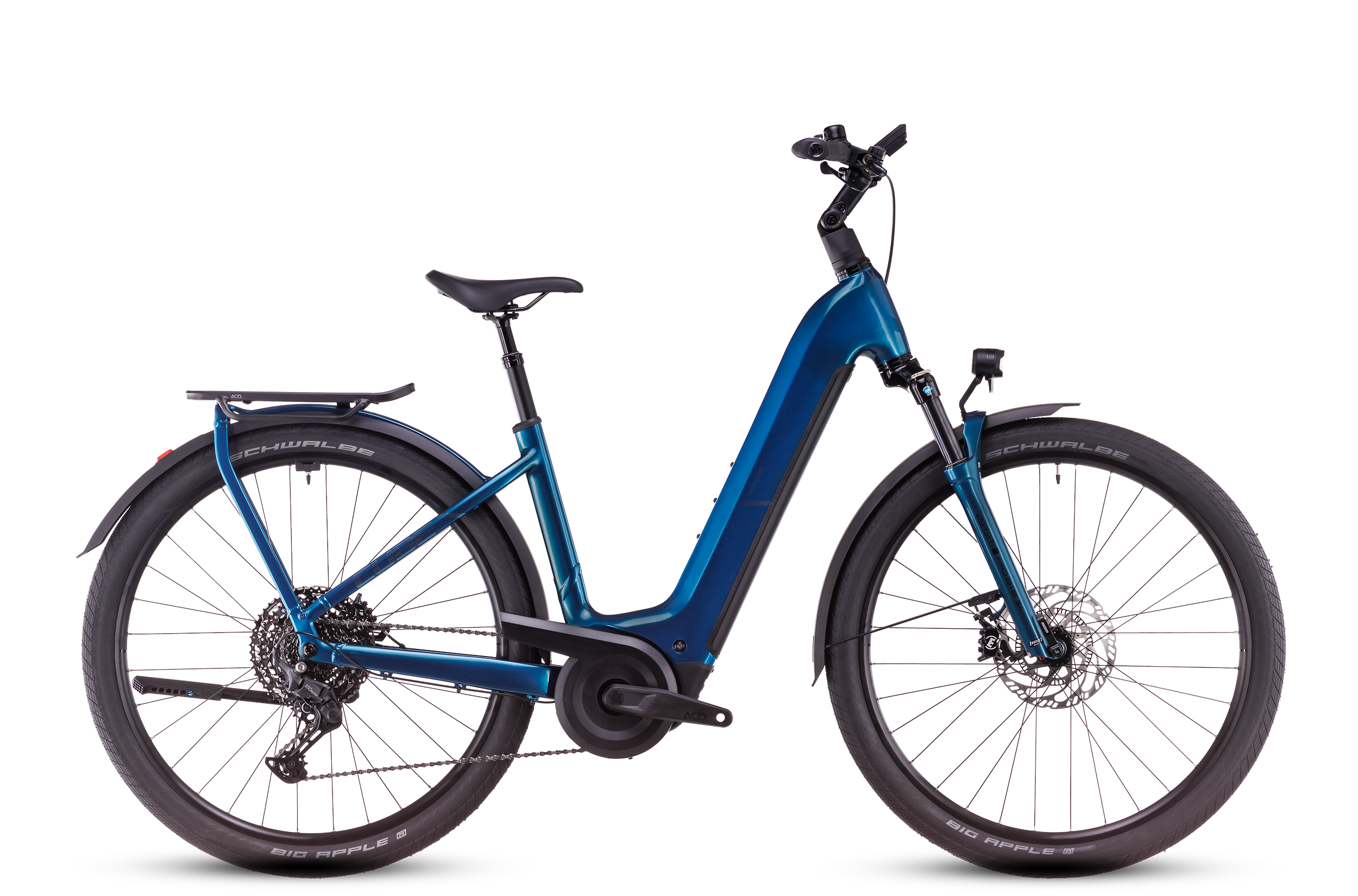 The CUBE Kathmandu Hybrid EX ABS 800 provides reliable support for touring enthusiasts on all routes. How? With its powerful and exceptionally secure Magura MT C ABS hydraulic disc brakes featuring an anti-lock braking system. This ensures exceptional grip on the front wheel, regardless of weather conditions, even during sudden braking maneuvers. The Bosch CX motor delivers up to 85 Nm of torque, providing plenty of forward momentum, and is powered by an 800 Wh PowerTube battery. This setup is complemented by an easy-to-use Shimano Cues 11-speed transmission that efficiently transfers power to the rear wheel. For those traveling with luggage, whether commuting to the office or embarking on a weekend getaway, our customizable and extremely stable integrated IC 3.0 luggage rack proves to be beneficial. A complete accessory set adds the finishing touch to this touring bike. Your bike adventure, your riding pleasure!