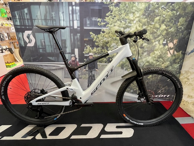 **Shock**: FOX NUDE 6T EVOL Trunnion, SCOTT custom with travel / geo adjustment, 3 modes: Lockout-Traction Control-Descend, Low Speed Adjustment / Custom large Air volume / Rebound Adjustment, Bearing Hardware / Travel 130-90-Lockout / T165X45mm