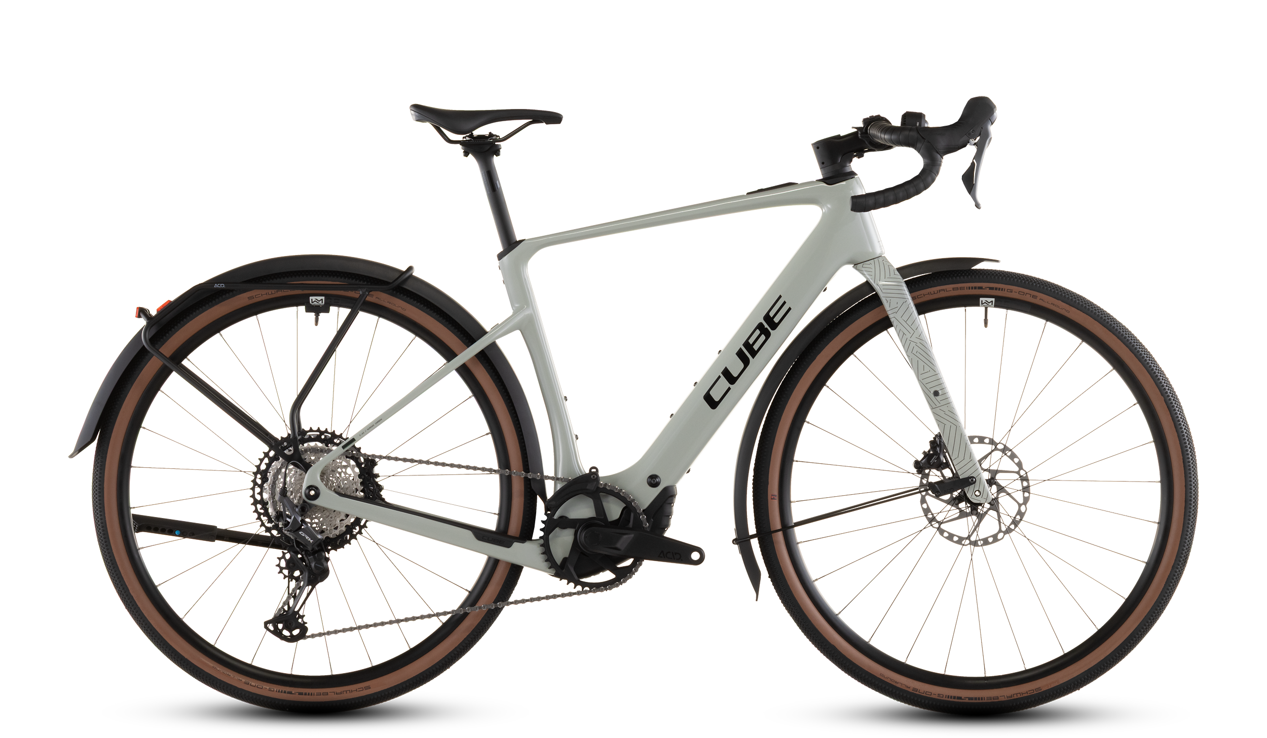 The Nuroad Hybrid C:62 Race FE features a lightweight Bosch drive combined with a highly elegant carbon frame and plenty of practical accessories such as fenders, a luggage rack, and integrated front and rear lights. An additional luggage rack can be mounted on the full carbon fork. Thanks to ample tire clearance, it can accommodate not only the 45 mm wide Schwalbe tires but also 50 mm tires, even with fenders. The lightweight Bosch SX motor, providing up to 60 Nm of torque, is powered by a 400 Wh battery. Moreover, as the chassis is PowerMore-ready, it can be extended with an additional 250 Wh of range if needed. For this gravel enthusiast, we have equipped a robust and lightweight Newmen wheelset. Reliable speed control and the perfect translation of power to the ground are ensured by strong hydraulic GRX disc brakes along with the wide-ranging GRX 12-speed drivetrain from Shimano. Let the adventure begin!