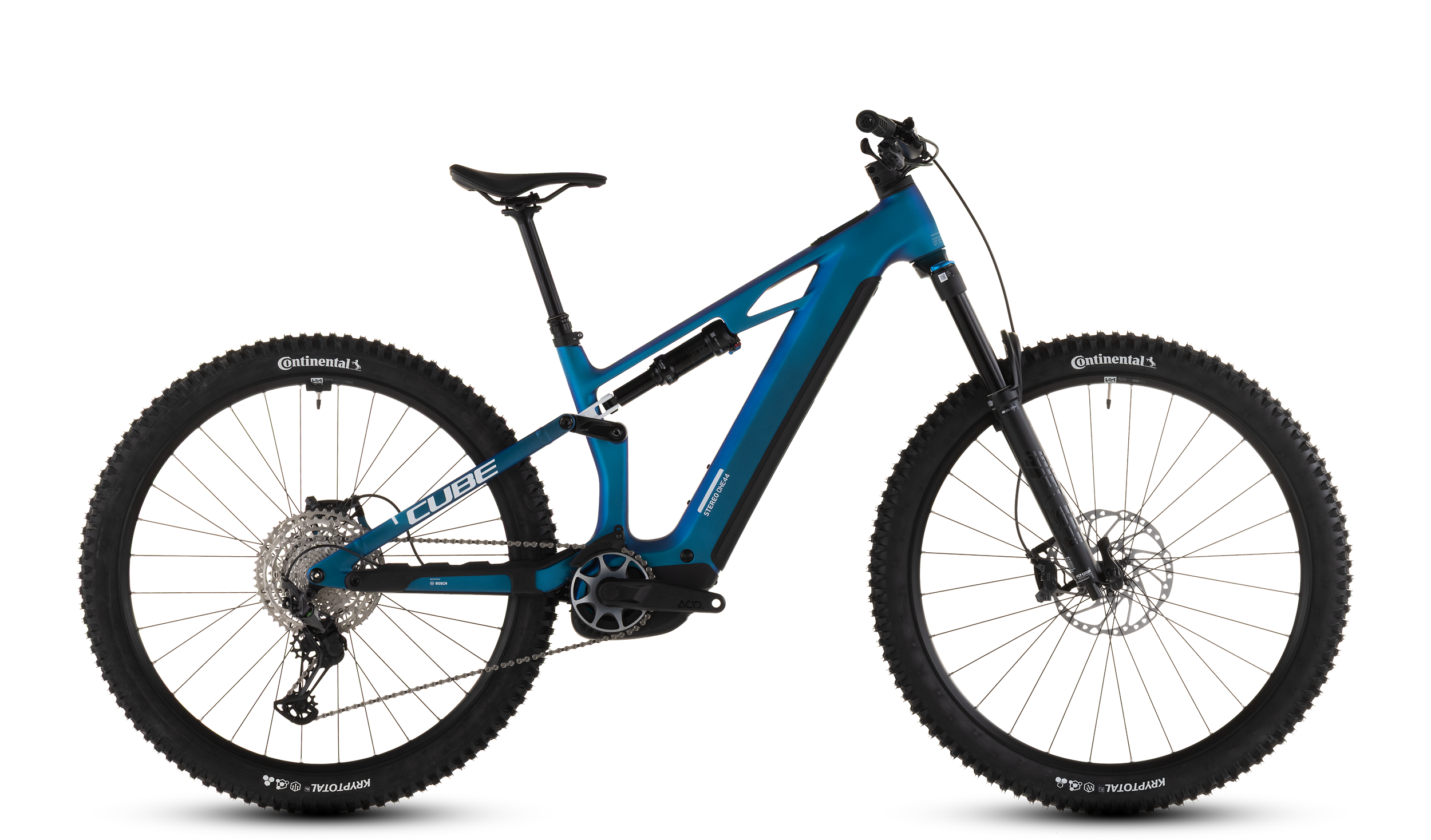 A really good bike is one that does everything and, above all, is super fun – just like the Stereo Hybrid ONE44 HPC SLX 800 with its Fox 36 Float 36 Rhythm fork and the matching Float Performance shock with 150 mm and 140 mm of travel. Also equipped with Newmen Performance 30 wheels, onto which we have mounted Continental Kryptotal 2.4 inch tires. The result: top-notch performance and a riding feel like on clouds. In terms of propulsion and range, the Bosch CX motor (with up to 100 Nm of torque and Kiox 400C display for the perfect overview) and the 800 Wh battery showcase their strengths. This power, finely tuned for the trail, is complemented by the smooth, super-reliable XT 12-speed drivetrain from Shimano. But so much thrust also needs to be controlled perfectly – that's the specialty of the biting, progressive, and safely decelerating Shimano XT 4-piston disc brakes with 203 mm rotors. It's clear that we also equipped this trail machine with a dropper seat post. Adventure mode on and go!