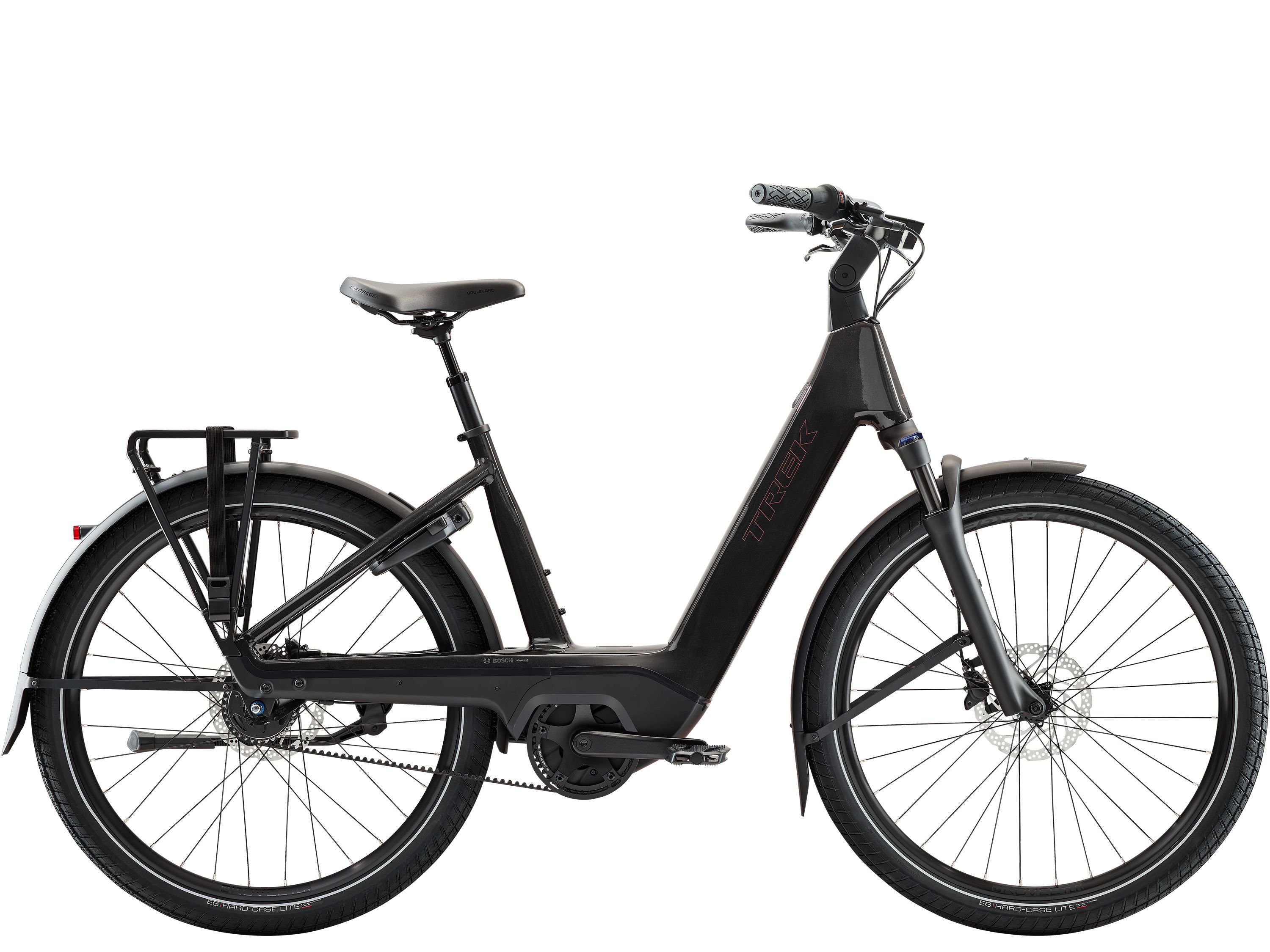 The Charter+ 4 Nexus 5 Belt 540Wh Lowstep is a low-maintenance and user-friendly E-City bike, perfectly suited for efficient commuting, leisurely tours, and everyday use in both urban and rural areas. Thanks to its adjustable cockpit, the individual seating position can be customized from upright and comfortable to active and efficient. It is equipped with a Shimano Nexus 5-speed hub gear specifically designed for E-bikes, a durable and whisper-quiet Gates CDC belt drive, and a Bosch Performance Line motor along with a long-lasting 540Wh battery. The equipment is rounded off by a 63mm steel suspension fork from SR Suntour, which smoothly handles bumpy roads and paths.