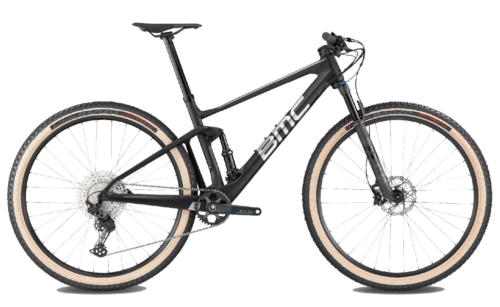 Validé en coupe du monde et en championnats du monde, le BMC Fourstroke met des performances de niveau mondial à portée du commun des mortels. Il propose tout ce qu'on attend d'une véritable machine de cross-country : de la légèreté, du rendement, de la rigidité, bref, de la vitesse, sans sacrifier pour autant le confort et le grip. Grâce à sa suspension arrière à la cinématique très soignée, ce vélo 29” de 100 mm de débattement devant comme derrière permet de ne pas se poser de questions dans les descentes techniques des parcours modernes et pardonne les erreurs quand la fatigue se fait sentir. Ce sentiment de sécurité et d'efficacité est renforcé par la tige de selle télescopique intégrée RAD de 80mm de débattement. Cette version Three du Fourstroke 01 est notamment équipée d'une fourche Fox 32 StepCast Performance Elite de 100mm de débattement, d'un amortisseur Fox Float DPS, d'une transmission Shimano SLX 1x12 vitesses, de freins à disque Shimano et de la fameuse tige de selle télescopique intégrée BMC RAD.