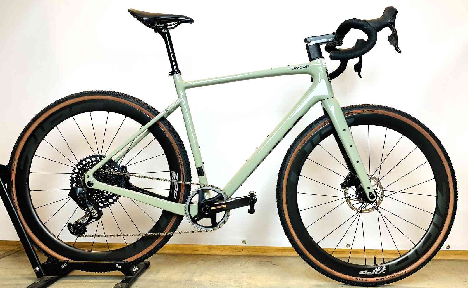 Hochwertiges Gravelbike aus Carbon, ausgestattet mit SRAM Force AXS und Zipp-Laufrädern. Für Abenteuer gemacht, von Hand in der Schweiz montiert.