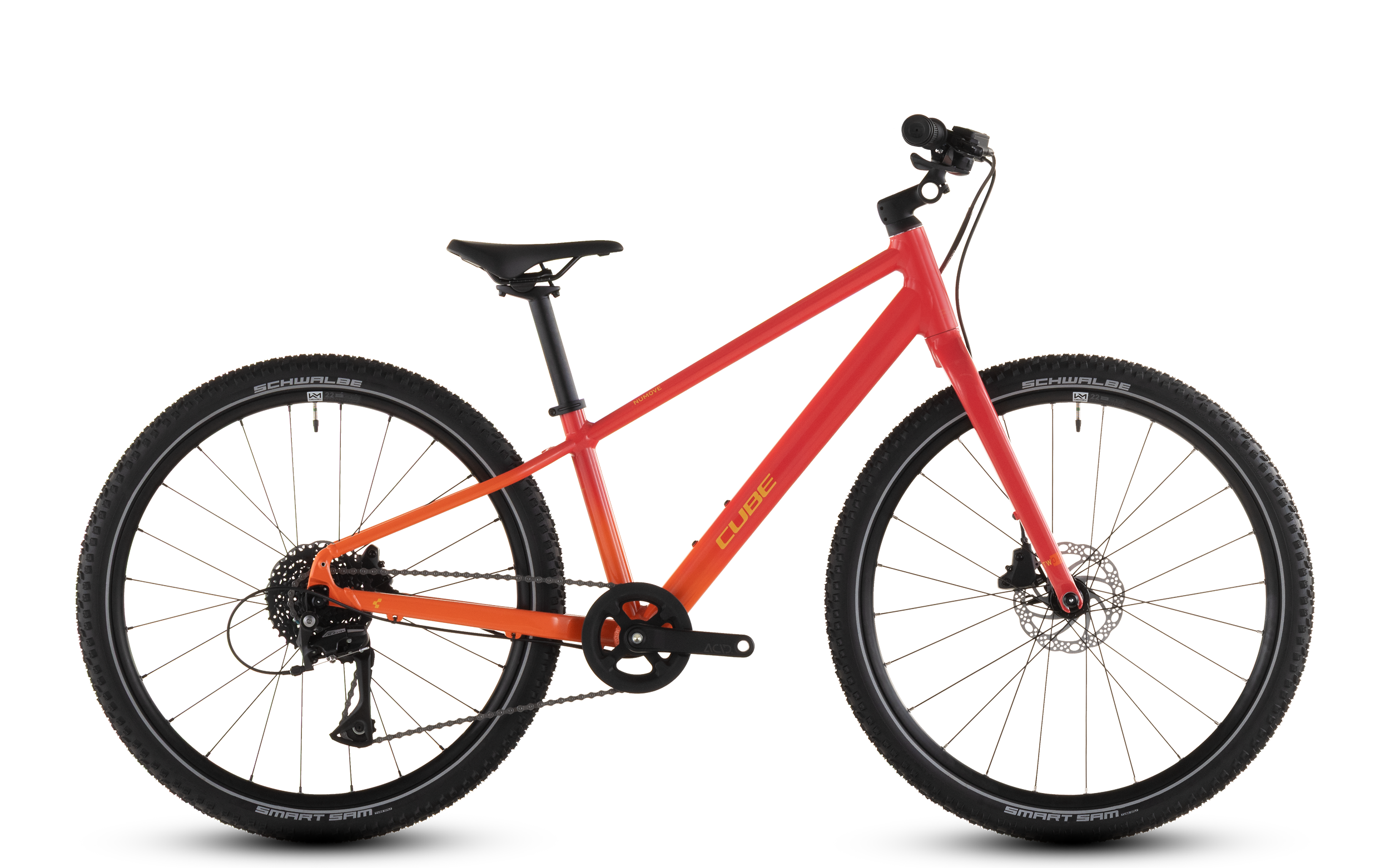 Simply attaching the brakes from an adult bike to a kids' bike? Not possible. That's why we equipped the Numove 240 Disc with 140 mm rotors and child-friendly proportioned levers on the hydraulic Tektro disc brakes. They can be extensively adjusted to optimally match the strength and riding skills of young, lighter riders. Additionally, there are Performance 22 Light wheels from Newmen, which we fitted with Schwalbe Smart Sam tires. The smooth 8-speed gear system has the right gear for every situation – and because we integrated an adjustable stem, the fit can be individually adjusted, allowing the bike to grow somewhat with the kids. In short: the perfect overall package for adventurous youngsters!