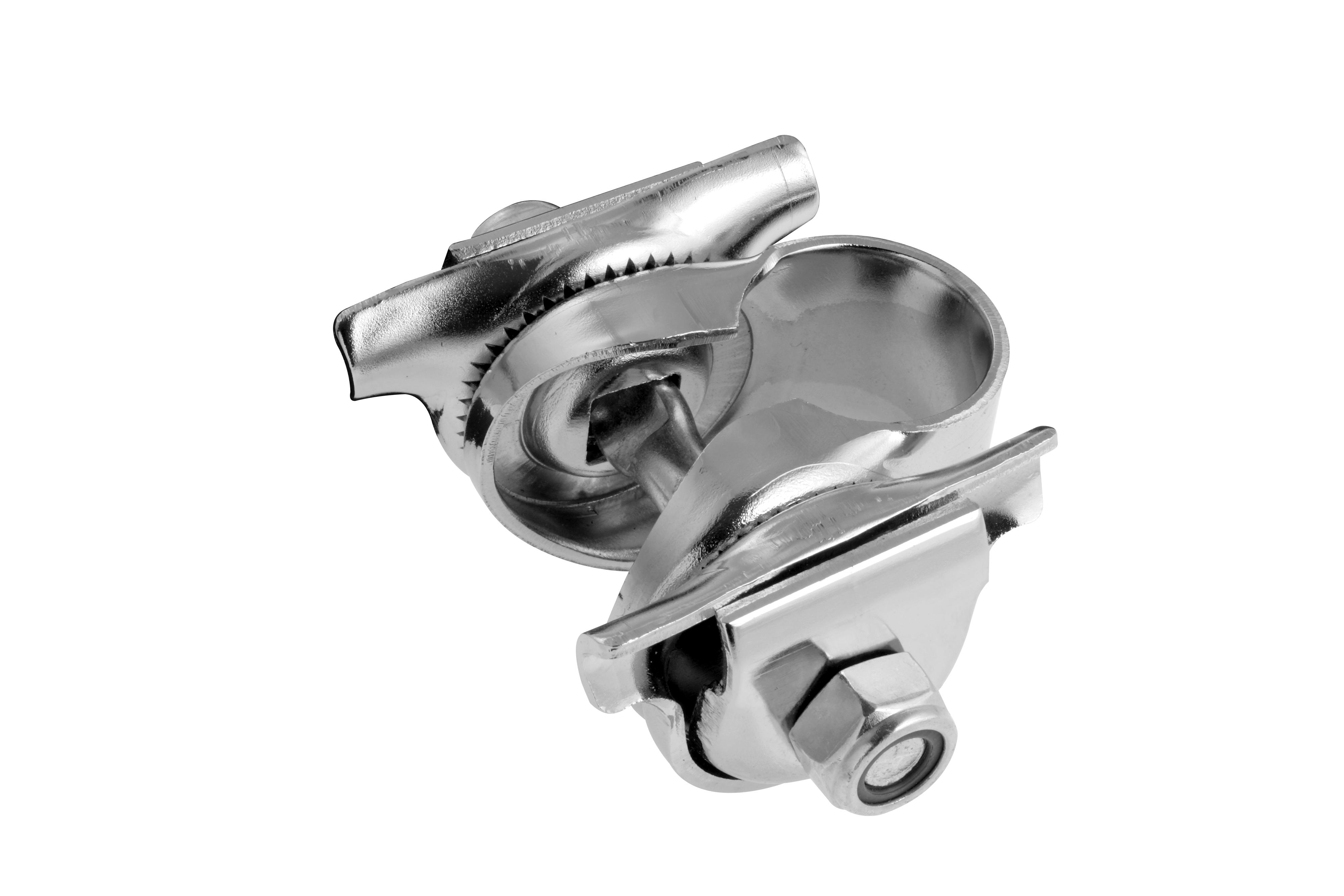 The chrome-plated saddle clamp from Books is used for mounting a Brooks saddle onto a candle seat post (7/8", 22.2 mm).