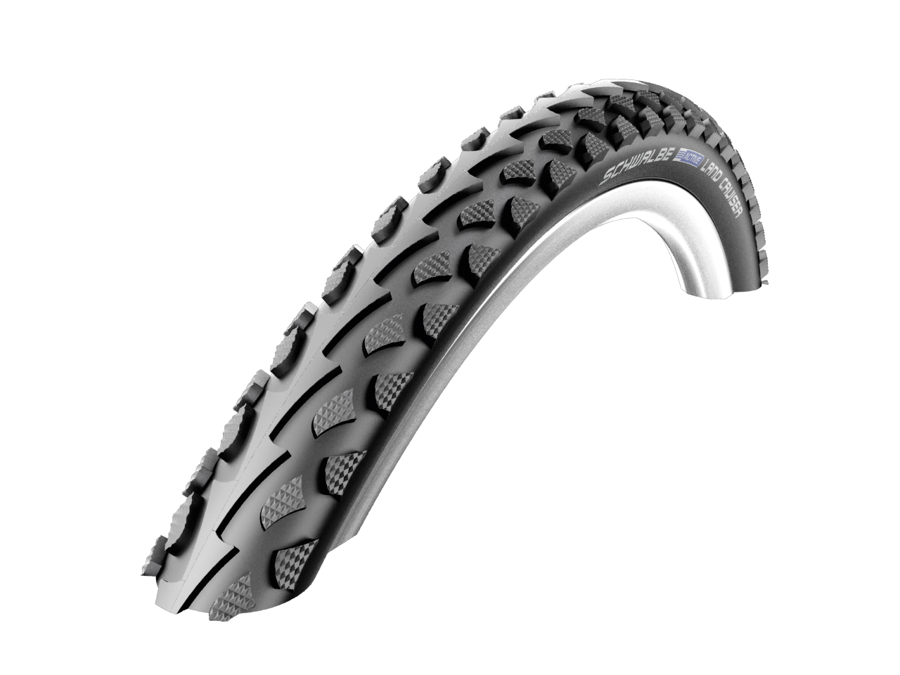 The Schwalbe Land Cruiser is excellent for trekking routes. In light terrain, the tire impresses with its gripping tread, but you can also enjoy its smooth rolling behavior on the road. The reliable Kevlar™Guard protects against punctures, and the TwinSkin sidewalls increase durability.