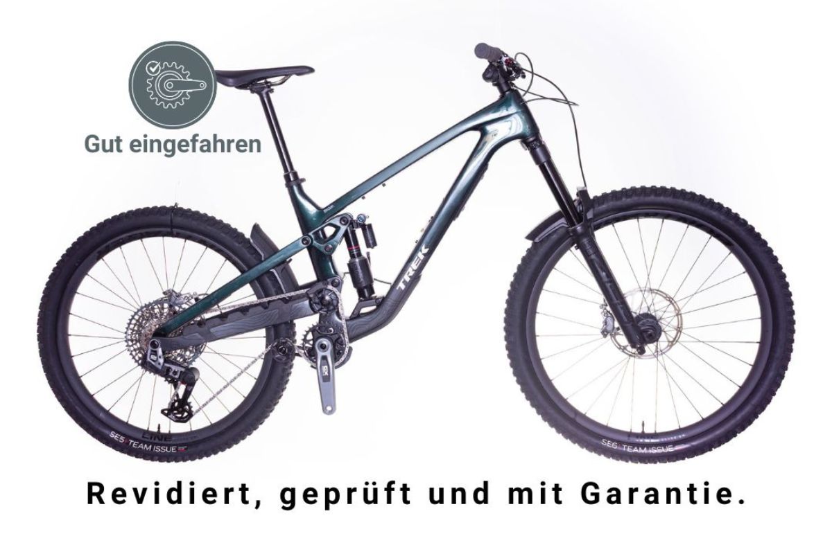 Dieses Trek Slash hat schon bewiesen, dass es draussen zu Hause ist. Dabei sind normale, unkritische Gebrauchsspuren entstanden. Dein Vorteil: Die Komponenten sind bereits perfekt aufeinander eingespielt – ein spürbarer Pluspunkt gegenüber einem Neubike. Das Bike wurde von uns bis ins Detail revidiert und Verschleissteile bei Bedarf ersetzt. Volle Performance zum attraktivsten Preis. Einsatzgebiet: Enduro Gewicht ohne Pedalen: 15.8 kg Rahmengrösse: L, für Körpergrössen von ca. 177 – 188 cm Neupreis: 8'099.- Kaufpreis: 4'400.- Miete pro Monat: 750.- Miete pro Jahr: 1'720.- Das Slash 9.8 GX AXS T-Type ist ein Carbon-Endurobike, das auch vor haarsträubenden Downhills nicht zurückschreckt. Sein Rahmen aus OCLV Mountain Carbon und das Fahrwerk mit hohem Drehpunkt und 170 mm Hub nimmt selbst große Brocken unbeeindruckt und brilliert bei steilen Rampen und schwierigen Ansteigen mit genialer Traktion. Ein 29˝-Vorderrad und 27,5er Hinterrad versprechen ein verspieltes Handling, während das starke RockShox-Fahrwerkspaket jede Aufgabe auf dem Trail mit Leichtigkeit löst. Darüber hinaus ist es mit einer drahtlosen SRAM GX AXS Transmission ausgestattet, die auch unter Last präzise schaltet. Alle Spezifikationen, Fotos und ein ausführlicher Werkstattbericht findest Du auf unserer Homepage (bikerevier.ch).
