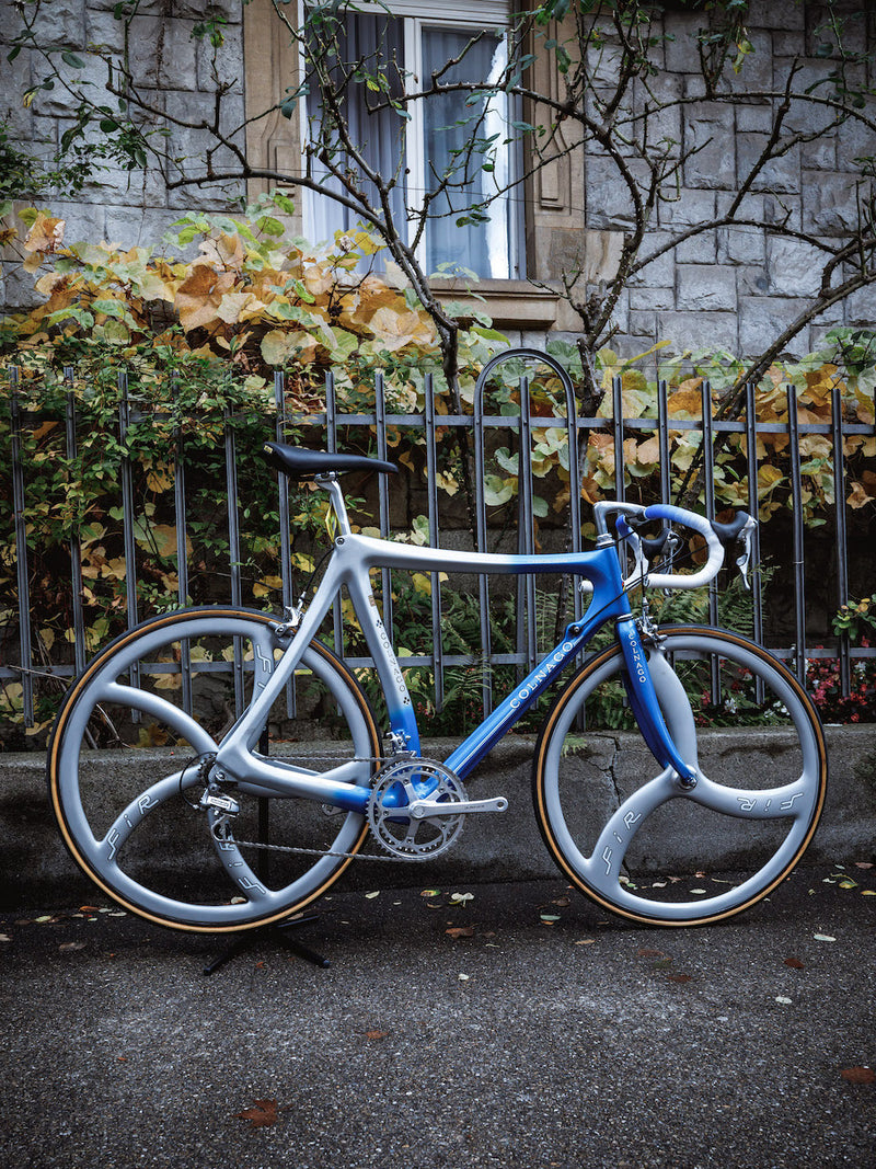 indescribable, an original Colnago Volo prototype Dura Ace 2x7 components 3/5 spoke FIR wheels original paintwork, original setup, small dents