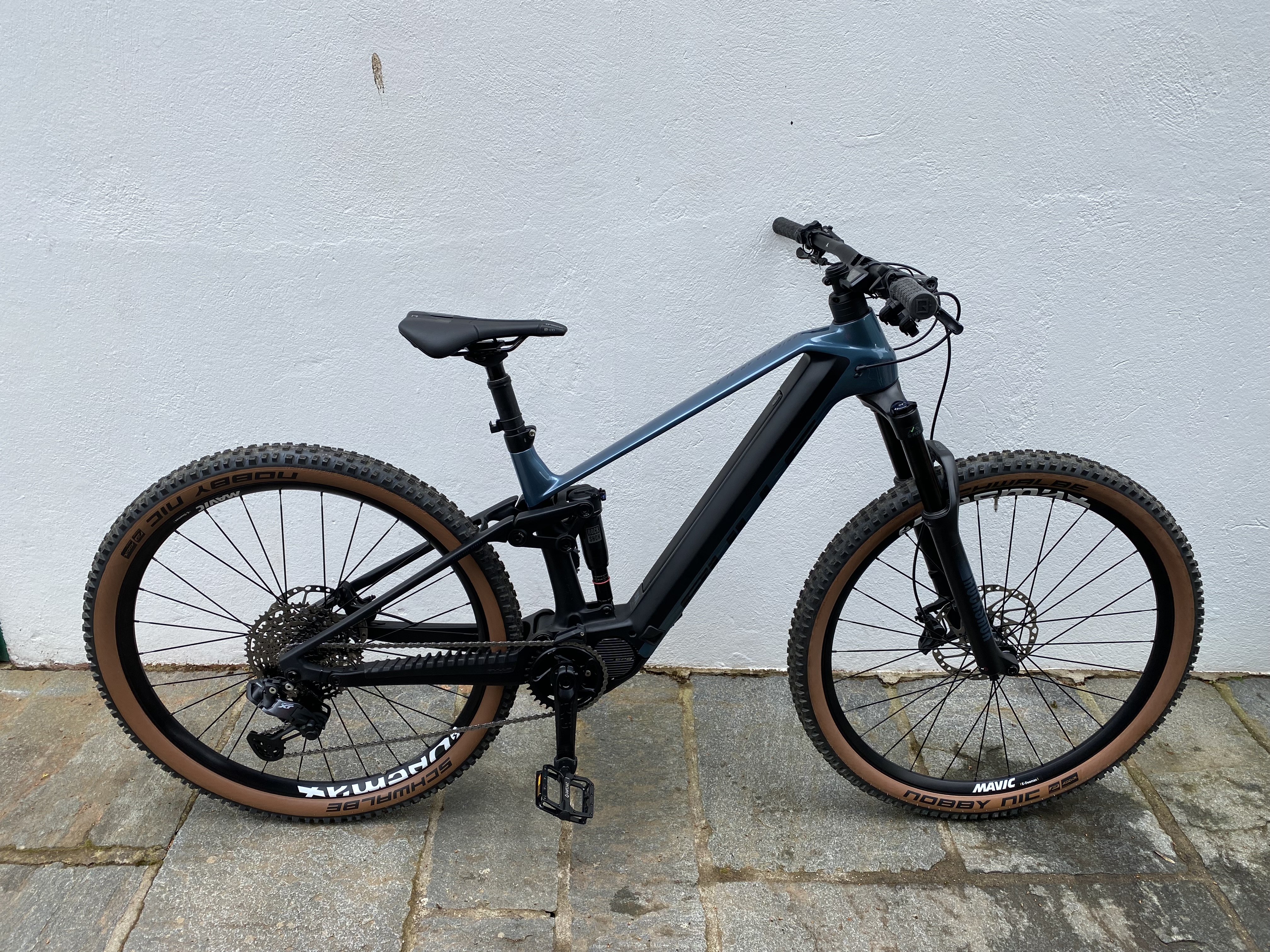 Vélo tout-terrain électrique en carbone 100% avec le nouveau moteur Shimano EP8 et le dérailleur électronique Shimano XT Di2. Équipé de la technologie FreeShift et autoShift qui ajuste automatiquement les vitesses en fonction de votre cadence de pédalage. Vélo de notre flotte d'essai. Composants mécaniques en très bon état. Quelques rayures sur le cadre.