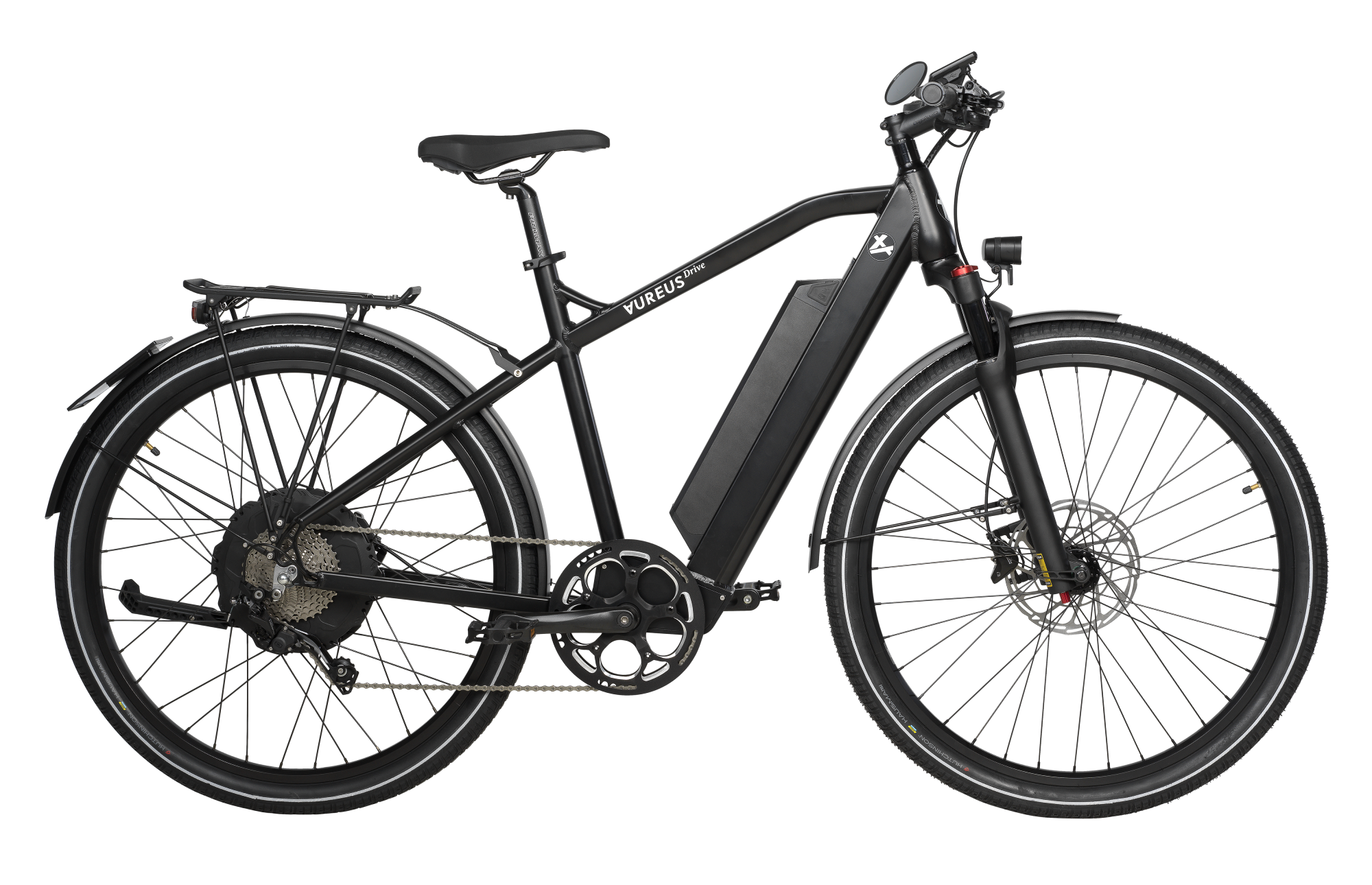 ✓ Starker & leiser Hinterradmotor mit 800W ✓ Akku-Reichweite bis zu 130 km ✓ 5-stufige Tretunterstützung ✓ Regeneratives Motorbremsen für eine Wiederaufladung während der Fahrt ✓ Komplette Montage & Qualitätssicherung in Luzern, Schweiz Rahmen: Geschweisstes Aluminium Rahmengrösse: L Bereifung: Schwalbe Super Moto 700x50c Pedale: Shimano Pedal PD-EF209 Gewicht des E-Bikes: (inkl. Batterie) 31kg (ohne Batterie) 25.5kg Elektromotor: Aureus-Power-Drive Hinterradnabenmotor 800 Watt / 55 Nm Display: 81.1mm x 52.7mm x 85.0mm LED Tretunterstützung: 5 Unterstützungsstufen & 3 Rekuperationsstufen Geschwindigkeit: 45km/h Batterie: 1200 Wh Lithium-Ionen-Akku Reichweite bei 45km/h Version: (Richtwert) 130 – 60km (Mögliche beeinflussende Faktoren siehe FAQ) Batterieladezeit: Ungefähr 8 Stunden Schaltung: Shimano Deore SL-M4100, Rapidfire Ganganzeige Bremse: Shimano 203mm Federgabel: AureusDrive Federgabel 70mm Federweg, 34mm Durchmesser Sattel und Griff: Ergonomische Griffe und Sattel der Marke Velo Gepäckträger und Schutzbleche: Aluminium von Pletscher Lenker: Aluminium von der Marke ergotec Rückspiegel: Busch & Müller