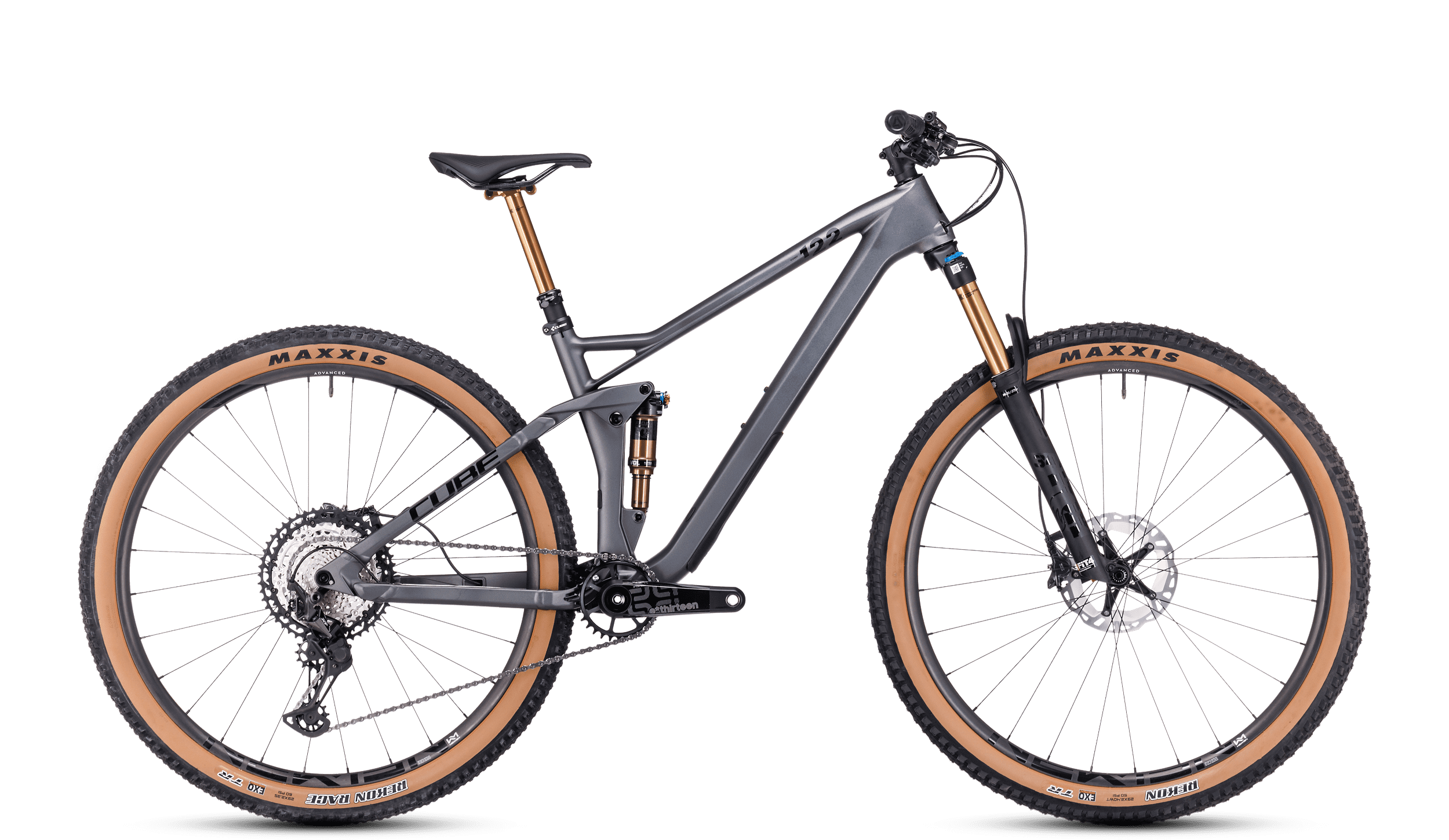 Understatement pur – doch der unaufgeregte Look des Stereo ONE22 HPC SLT 29 mag täuschen. Denn hier hat man es mit einem waschechten Trail-Profi mit der viel gepriesenen CUBE Kinematik plus einer Fox 34 Float Factory Gabel und einem Fox Float DPS Factory Dämpfer zu tun. Letztere sind mit einer edlen Kashima Beschichtung für ultimatives Ansprechverhalten versehen. Die versenkbare Sattelstütze mit Remote nimmt es mit jedem noch so steilen Trail auf. Unschlagbaren Grip und top Bremskraft liefert das Zusammenspiel der leistungsstarken hydraulischen Shimano XT Scheibenbremsen und griffigen Maxxis Reifen mit ultraleichten Schwalbe Schläuchen auf leichten Newmen Advanced Carbonlaufrädern. Und die breit gefächerte Shimano XT 12-fach Schaltung plus E13 TRSr Carbonkurbel steht für superpräzise und superzuverlässige Gangwechsel.