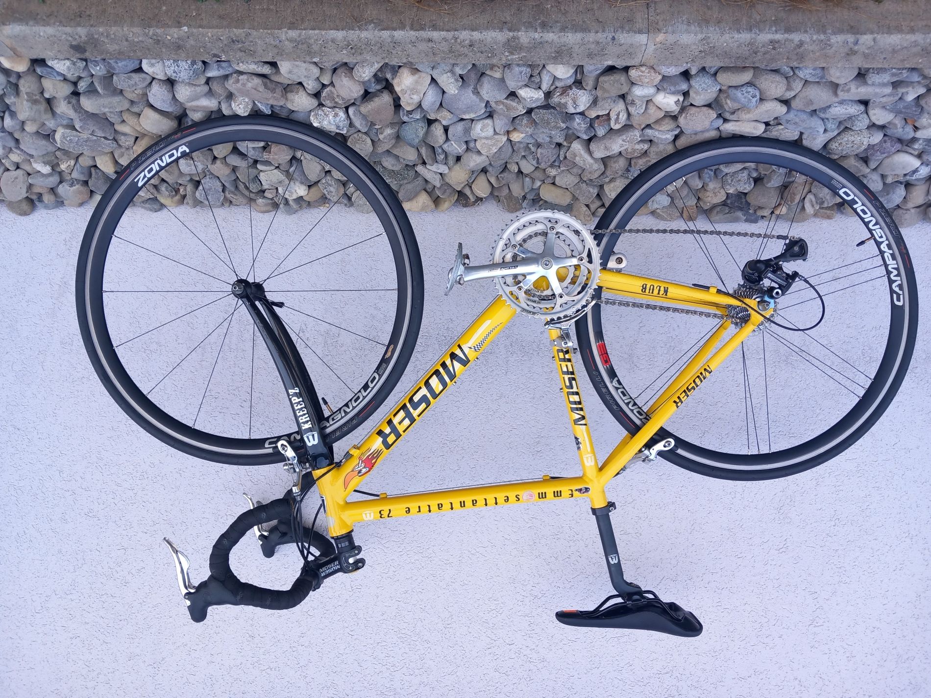 Avis aux collectionneurs et aux brocanteurs. Un vélo historique ! Un vrai F. Moser M73 Emmesettantatre ! Un vélo en alu italien, Monté en Campagnolo Veloce 3x10 vitesses. Cadre: S - Convient pour une personne de 156 à 166 cm. Selle, guidoline, chaîne neuves et pneus neufs.