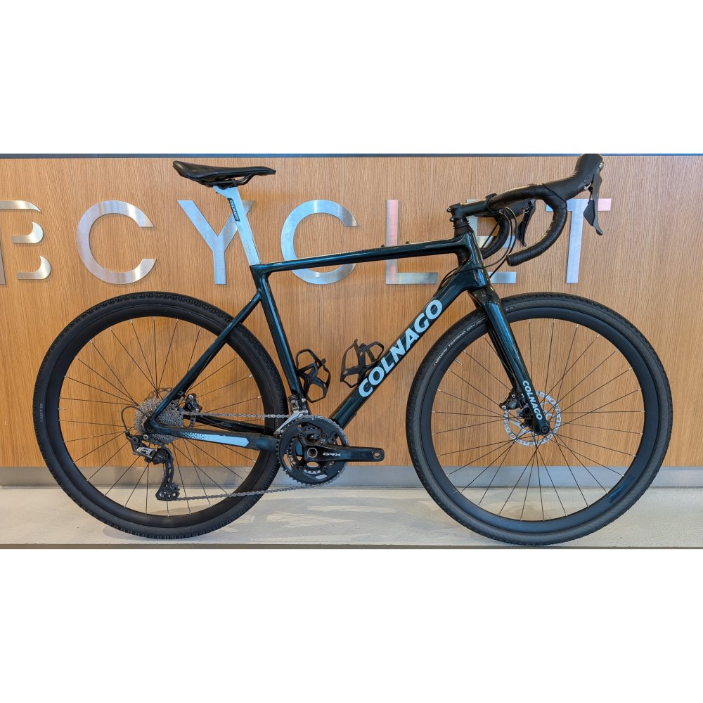 À vendre vélo gravel en carbone : Colnago G3X vert de 2023, utilisé pour notre activité de location de vélo.