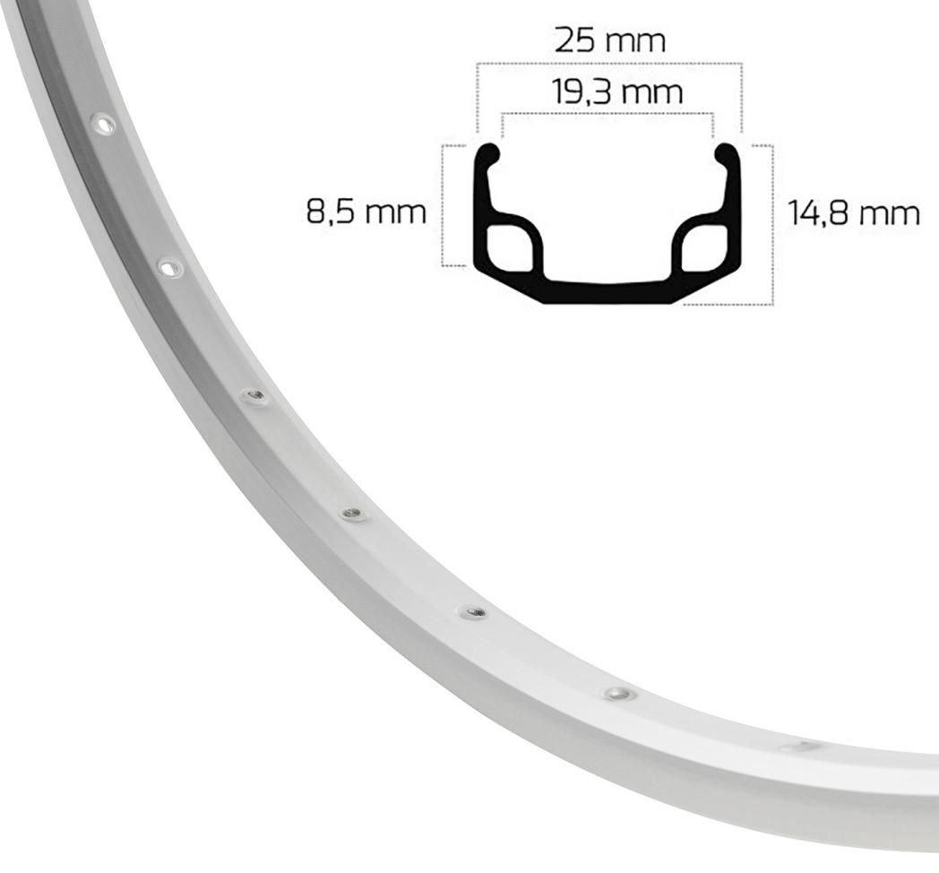 La jante Rigida AS26 a 36 trous et est disponible en 20" et 24". La jante est de couleur argent mat et convient aux valves d'un diamètre de 8,5 mm.