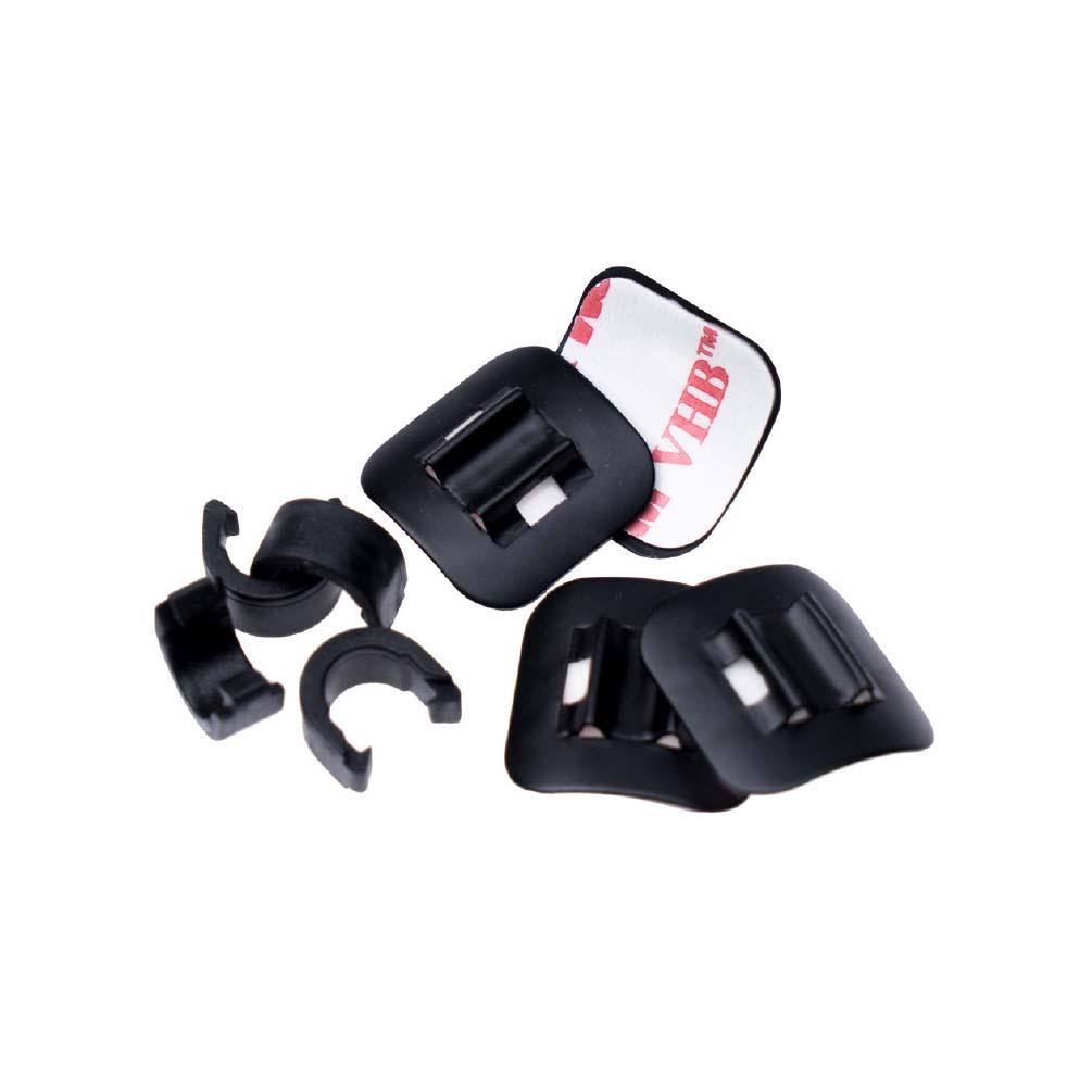 Kit de guidage de câbles à coller sur le cadre (4 pièces). Aluminium anodisé avec des pastilles adhésives 3M, forme ajustable à la surface de collage.
