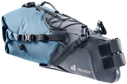 La costruzione in due pezzi di questa borsa sottosella per gli escursionisti giramondo e realizzata con un sacchetto asciutto impermeabile e leggero con una chiusura a fibbia avvolgibile, una valvola di sfiato dell'aria e un'imbracatura con un cordino elastico e passanti per l'attrezzatura sulla parte superiore, oltre a una base rinforzata che rende il carico e lo scarico veloce e facile durante le brevi soste, perché il sacchetto asciutto si puo rimuovere, mentre l'imbracatura rimane sulla bicicletta. Le due cinghie con fibbia le due cinghie con gancio e anello si adattano a una varieta di dimensioni di strutture e di diametri di tubi, incluse le bici in carbonio.