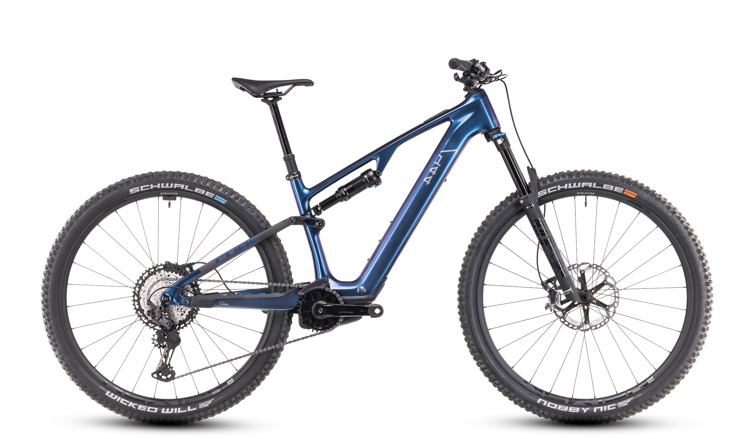 Sviluppare una bici MTB superleggera con motore Bosch non è affatto semplice. Per questo motivo, il telaio dell'AMS Hybrid ONE44 C:68X è realizzato con il nostro innovativo materiale composito in carbonio C:68X®, che unisce massima stabilità e rigidità a un peso estremamente ridotto. La batteria da 400 Wh trova spazio nel tubo obliquo, il più vicino possibile al nuovo motore Bosch SX leggero – per una maneggevolezza di prima classe. Inoltre, il telaio è pronto per PowerMore, quindi può essere potenziato con una batteria opzionale da 250 Wh per un'autonomia ancora maggiore. Il fatto che abbiamo posizionato i cavi all'interno gioca a favore dell'elegante estetica del telaio. In aggiunta, c'è una leggera guida catena. Grazie a un headset con regolazione dell'angolo, la maneggevolezza può essere adattata allo stile di guida individuale. Ottime premesse per tanta potenza e velocità su tutti i sentieri, vero?