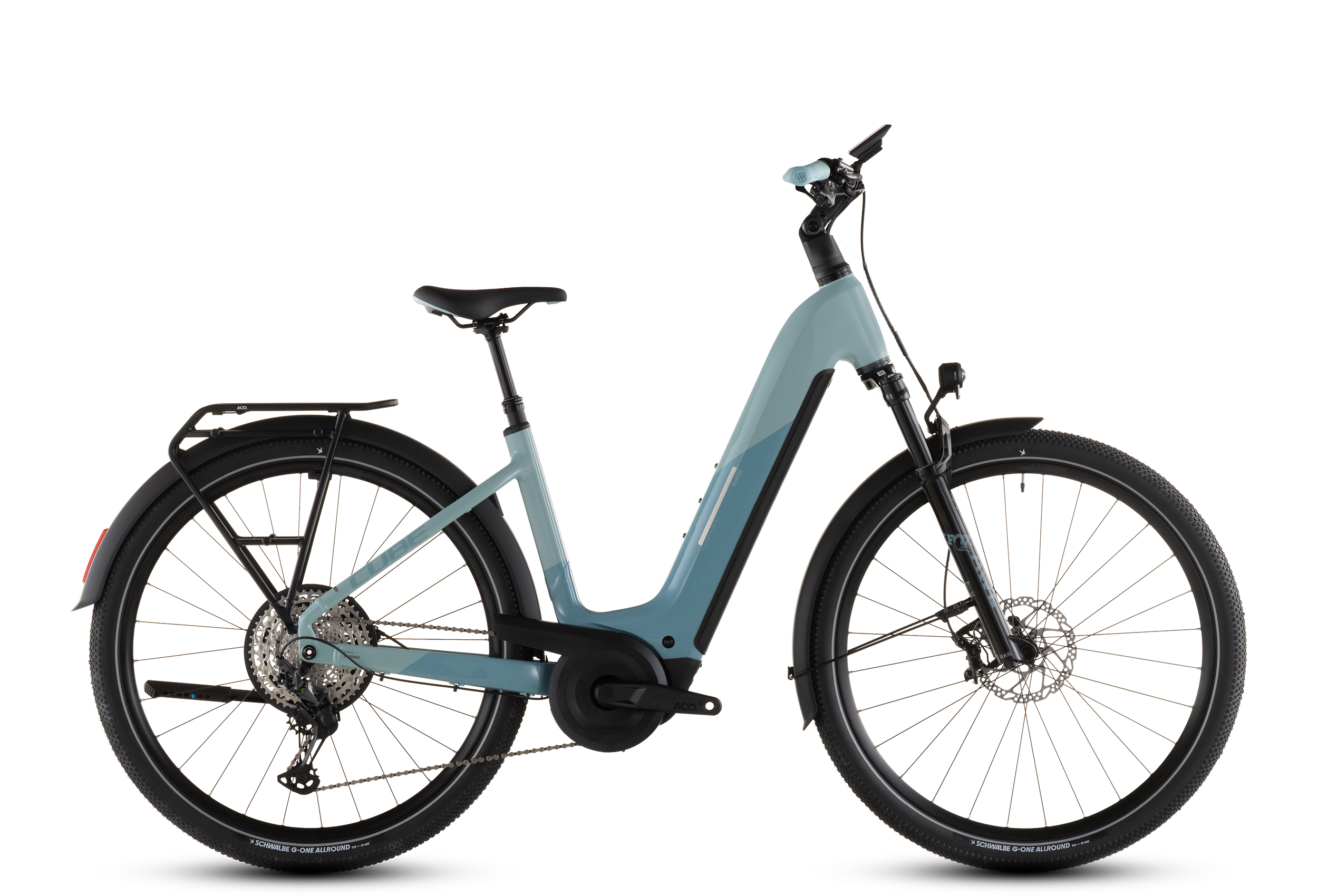 Una buona bici è come un biglietto per la grande libertà. In questo senso, abbiamo dato la stessa importanza a affidabilità, spinta e autonomia nello sviluppo del Nuride Hybrid SLX 800 quanto a comfort e stile. Il suo motore Bosch CX e la batteria da 800 Wh offrono un supporto eccezionale e rendono ogni percorso un piacere senza sforzo. Per un comfort di guida piacevole su terreni accidentati, la forcella ammortizzata Fox 34 AWL, facilmente regolabile, è responsabile del morbido escursione di 100 mm. Inoltre, il cambio 12-fach XT di Shimano, grazie al suo ampio rapporto di trasmissione, ha sempre la marcia giusta pronta anche nelle salite ripide. Sui cerchi Newmen Performance 25 abbiamo montato pneumatici Schwalbe G-One Allround che rotolano velocemente e si adattano a qualsiasi tipo di superficie stradale o sentiero. In termini di sicurezza e potenza di frenata in ogni condizione meteorologica, i potenti freni a disco idraulici Shimano XT offrono un servizio affidabile. Molti accessori pratici – parafanghi, luci, portapacchi semi-integrato 2.0 e cavalletto laterale – completano il tutto. Nessun dubbio, questa bici è già pronta per l'avventura!