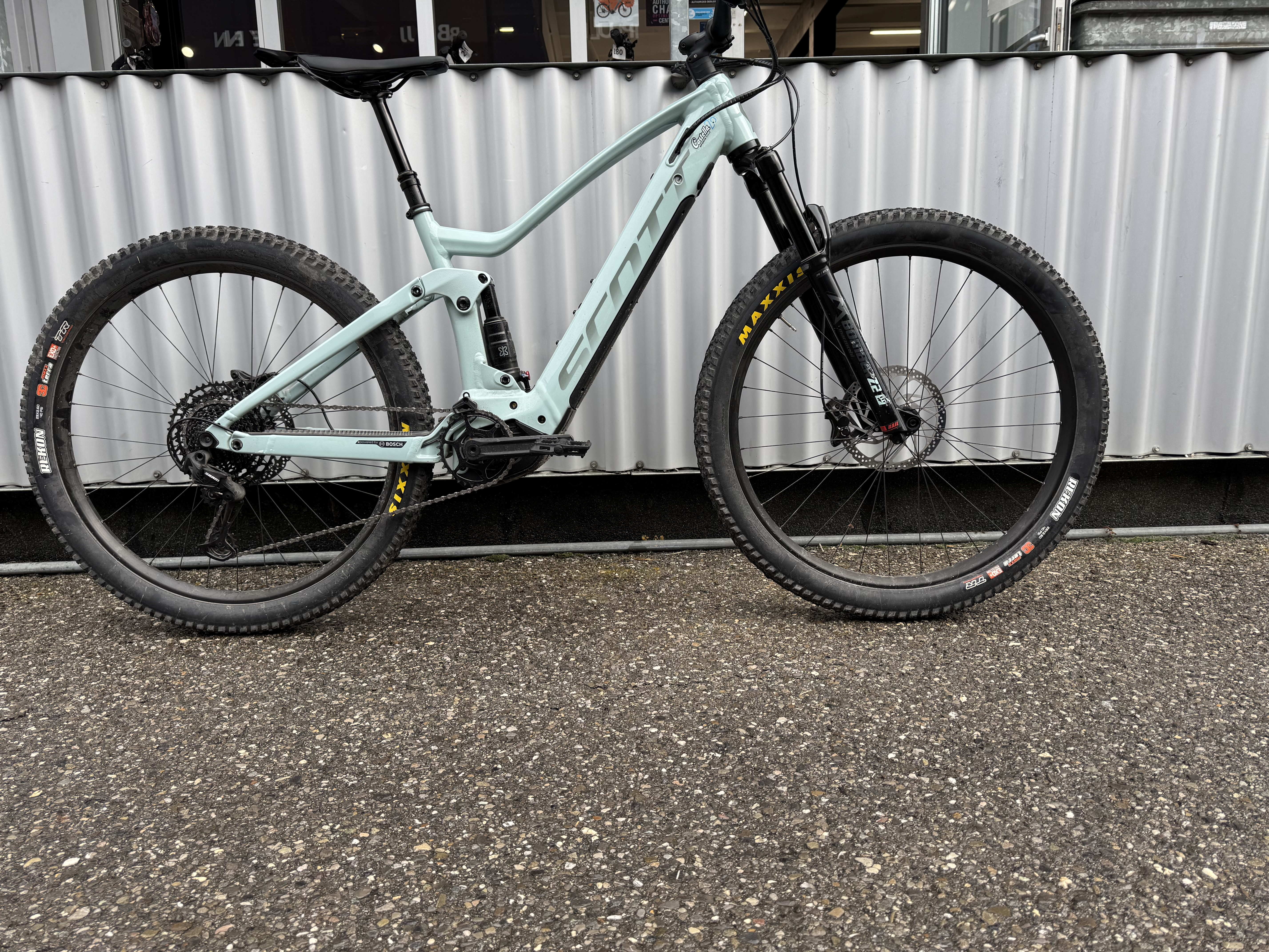 🚲 Scott Contessa Strike eRIDE 920 – VTT électrique femme / trail polyvalent Un vélo qui combine performance, polyvalence et confort, prêt à affronter les sentiers exigeants comme les longues randonnées. Caractéristiques clés : Cadre / suspension : Aluminium avec système VLK / TwinLoc, débattement arrière 140 mm (réglable entre 140 / 90 / blocage) Fourche : Marzocchi Z2 Air, 140 mm de débattement Amortisseur : X-Fusion NUDE, version custom Scott, 3 modes (Lockout / Traction / Descente) Transmission : SRAM SX Eagle 12 vitesses Freins : Shimano BR-MT420, disques 203 mm avant et arrière Roues / pneus : Jantes Syncros MD30 29”, pneus Maxxis Rekon 29 x 2,6 Tige de selle : Syncros Duncan Dropper (versions selon cadre : 100 / 125 / 150 mm) Moteur : Bosch Performance CX (génération 4) Batterie : PowerTube intégrée 625 Wh Console / commandes : Bosch Purion + twinloc pour régler suspension / géométrie