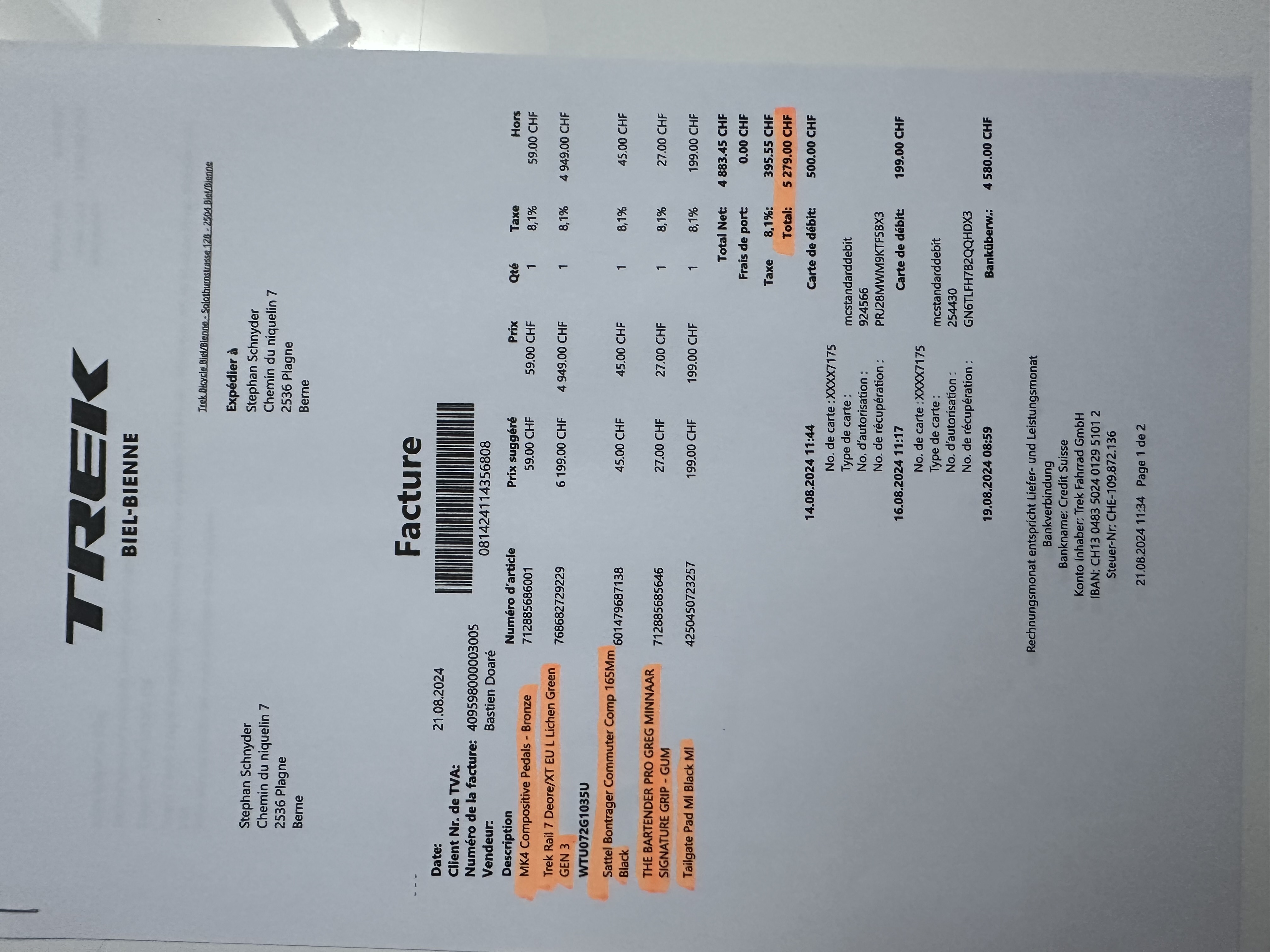 Per concludere l'acquisto, pagare l'importo restante in contanti* o tramite la piattaforma velocorner (consigliato). Per effettuare il pagamento sul conto bancario del venditore, è obbligatorio confermare il trasferimento su velocorner.