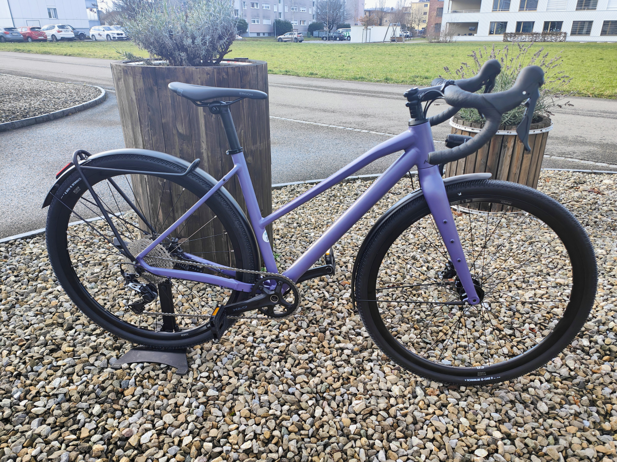 Spezifikationen Modell-Jahr 2026 Farbe Perlbrombeer matt Basisfarbe violett Rahmengrösse 48 cm / 19" (M) Rahmenart Trapez Rahmenmaterial Aluminium Raddurchmesser 28 Zoll Schaltung 1x11 GRX Lenker Satori X-Race Aero S:400 mm, M+L:440 mm, 16° Griffe VELO Knob Microgrip Vorbau Ergotec Hake, S:60 mm, M:80 mm, L:100 mm Sattel Ergon SR10 Neo Sattelstütze Satori Astro Gabel Gabel Rigid Alloy X12 Beleuchtung Front: Supernova E3 PRO 2, 70 Lux, mit Tagfahrlicht / Heck: Litemove TL-FD LED Gepäckträger Packtaschenhalter AL Lite / Ständer Ursus Evolution Rerar Gewicht 12.7 kg