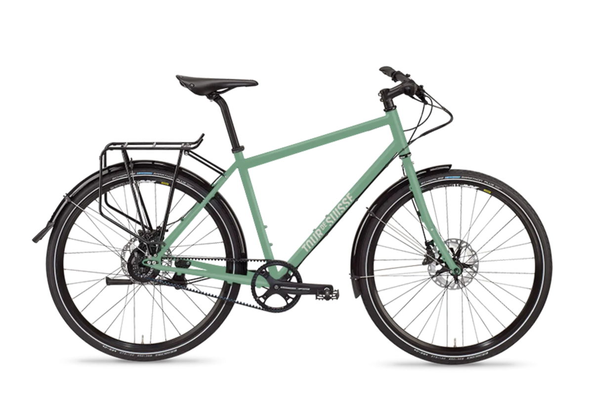 Scopri il nostro assortimento di biciclette e e-bike, ideale per l'uso quotidiano e le gite. Tra le nostre opzioni, troverai il modello Tour de Suisse Fernweh in un elegante verde menta opaco, con una misura di 53 cm e dotato di un sistema di trasmissione XT12 e un faro Supernova. Scegli la tua bicicletta perfetta per le tue avventure!